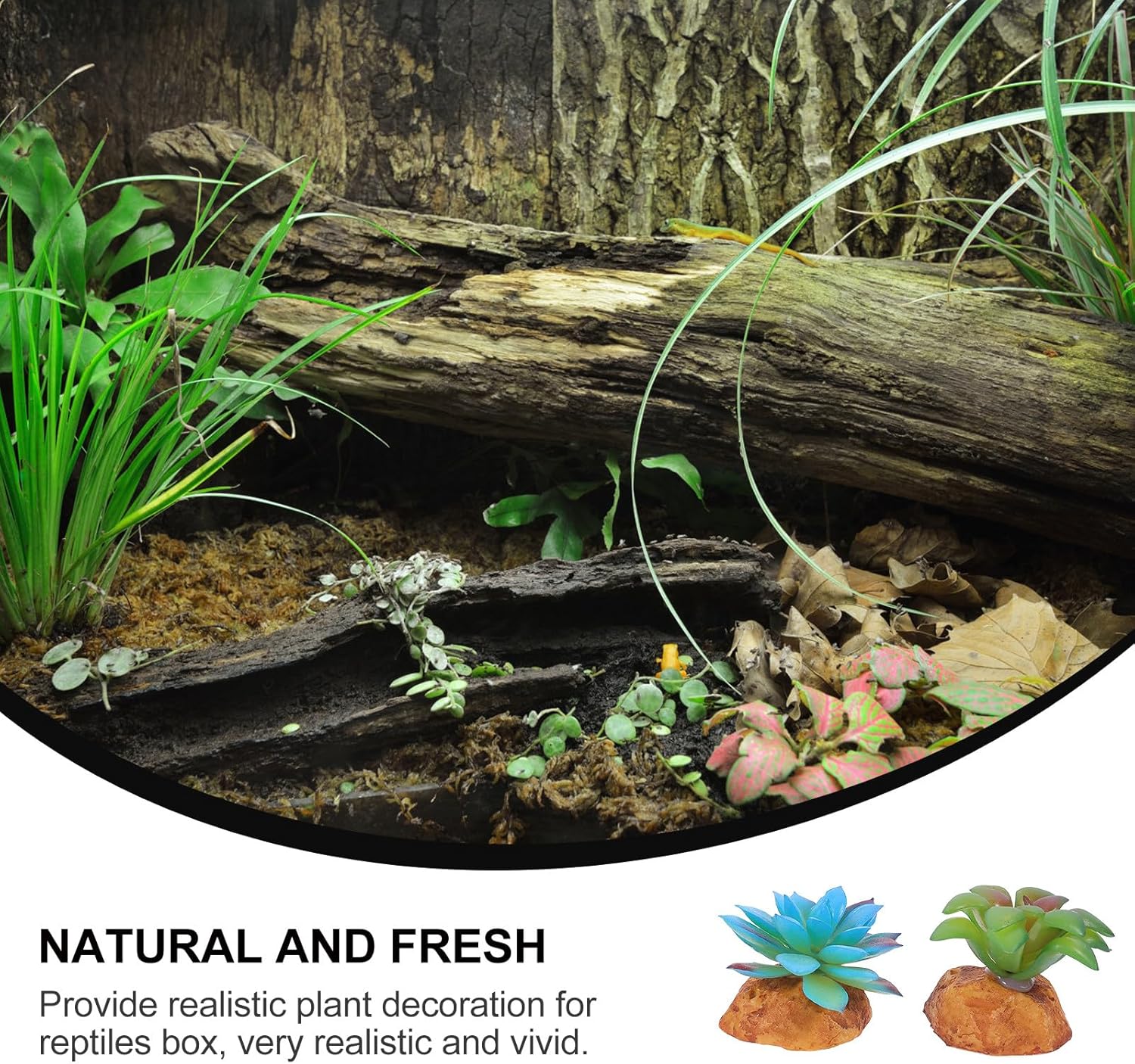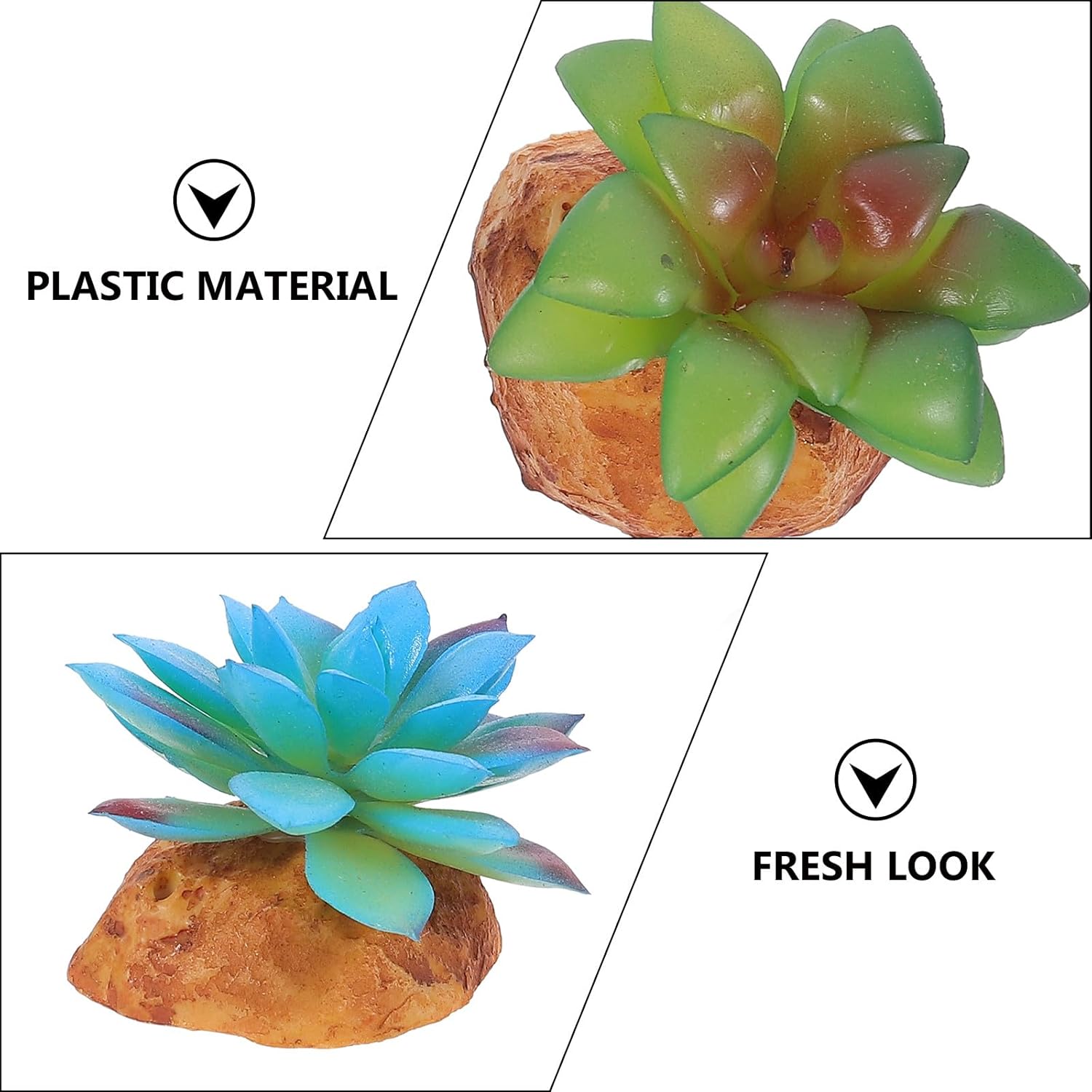Package Include 2 x simulation plants decors Features - Note: This product is 2 styles fake plants. -Product Info:Succulent decorative ornaments - Color: Assorted Color. - Material: resin and plastic. - Very safe for your small reptiles, they will like it realistic artificial plants. - They offer a unique environment feeling.Change your reptiles box into a unique scenery artificial succulent. - Create a nice natural and fresh environment reptile breeding box faux plants. - Adopt premium resin and plastic material for durable and use. - Perfect for decorating your reptiles box, very natural and beautiful outdoor fake plants.Goods Informationfake plants for outside Natural and fresh look, making your reptiles box more vivid and beautiful.outdoor fake plants Provide realisticplant decoration for reptiles box, very realistic and vivid, good decorative effect.faux plants This is a reptile box landscaping simulation plants set.realistic fake plants Made of resin and plastic material, very durable to use