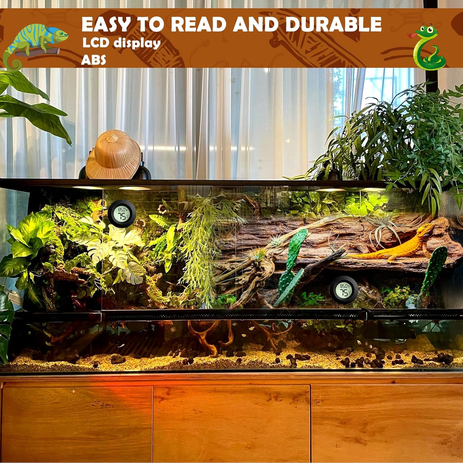 • Precision Health Guardian Your reptile pets are very sensitive to temperature and humidity, and small changes can affect their comfort and even their health. This humidity thermometer utilizes a built-in high-precision measurement chip that monitors the environment with 0.9°F accuracy, ensuring you are always aware of the actual conditions in your animal's tank. It's not just a matter of caring, it's a consideration for your pet's long-term health.
