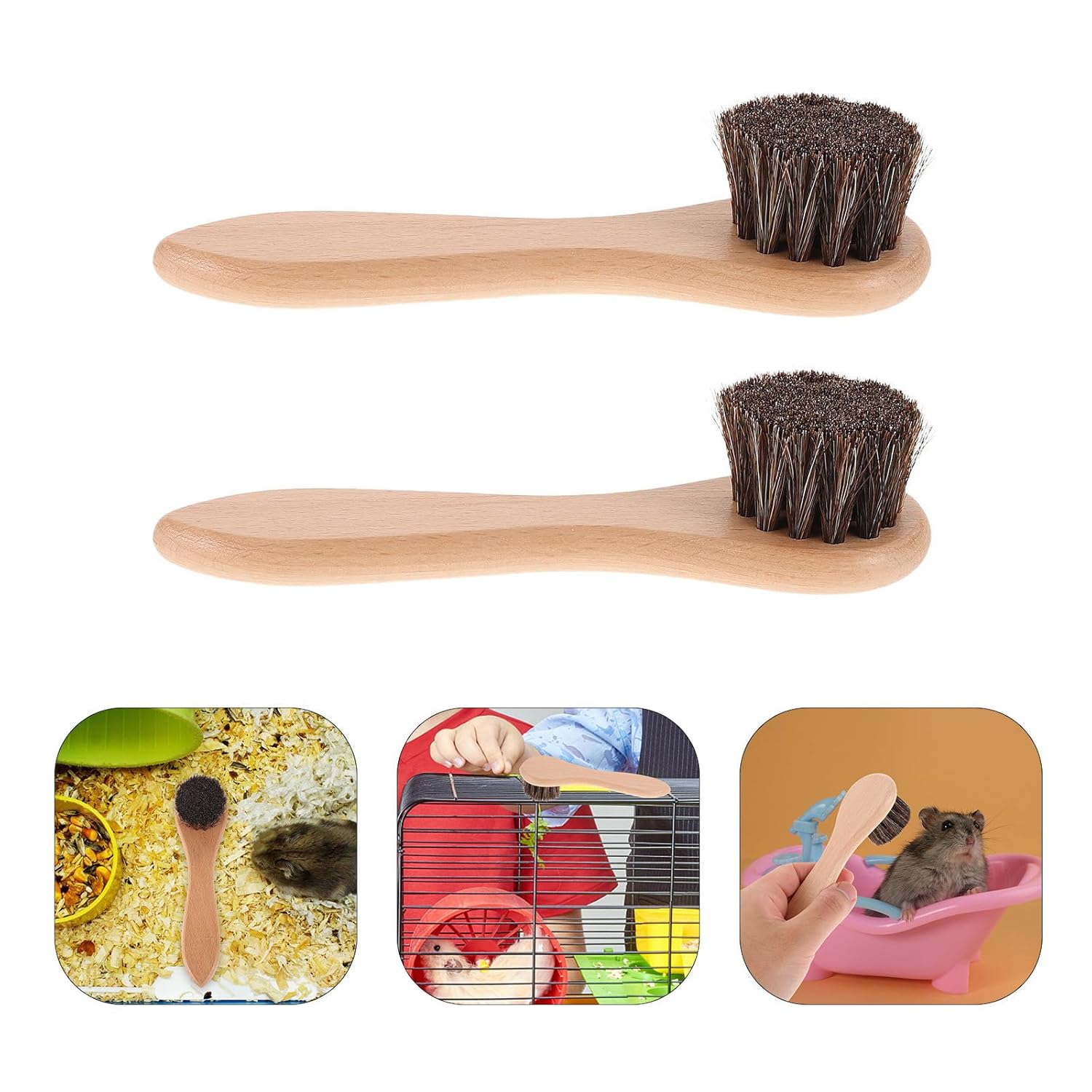 Package List 2 x pet bath brush Characteristics -Color:Light Brown -Size:15.50X4.40X3.20cm/6.09X1.73X1.26in -Material:Wood, horsehair -Effective hair removal: easily removes loose hair, ensuring your pet stays clean and reducing the risk of skin problems small pet cleaning -For various small pets: suitable for a range of small pets including hamsters, guinea pigs, and rabbits, fulfilling their bathing needs animal bathing brush -Pleasant bath time: turns bath time into an enjoyable experience, enhancing the bond between you and your pet grooming brush hole handle -Ultra-gentle bristles: the ultra-soft bristles are designed to be gentle on your pet's sensitive skin, providing a comfortable bathing experience pet grooming accessory -Product Info:Pet Bath Brush -Secure grip: the unique handle design offers a secure grip, making the bathing process easier and efficient rabbit cleaning suppliesGoods Descriptionpet grooming tool This grooming brush is an essential accessory for small pet owners.hamster care brush The wooden handle is durable and easy to hold, allowing you to clean and massage your pet, a shiny coat.small pet bathing brush The soft bristles are designed to be gentle on your pet's skin, making grooming a experience
