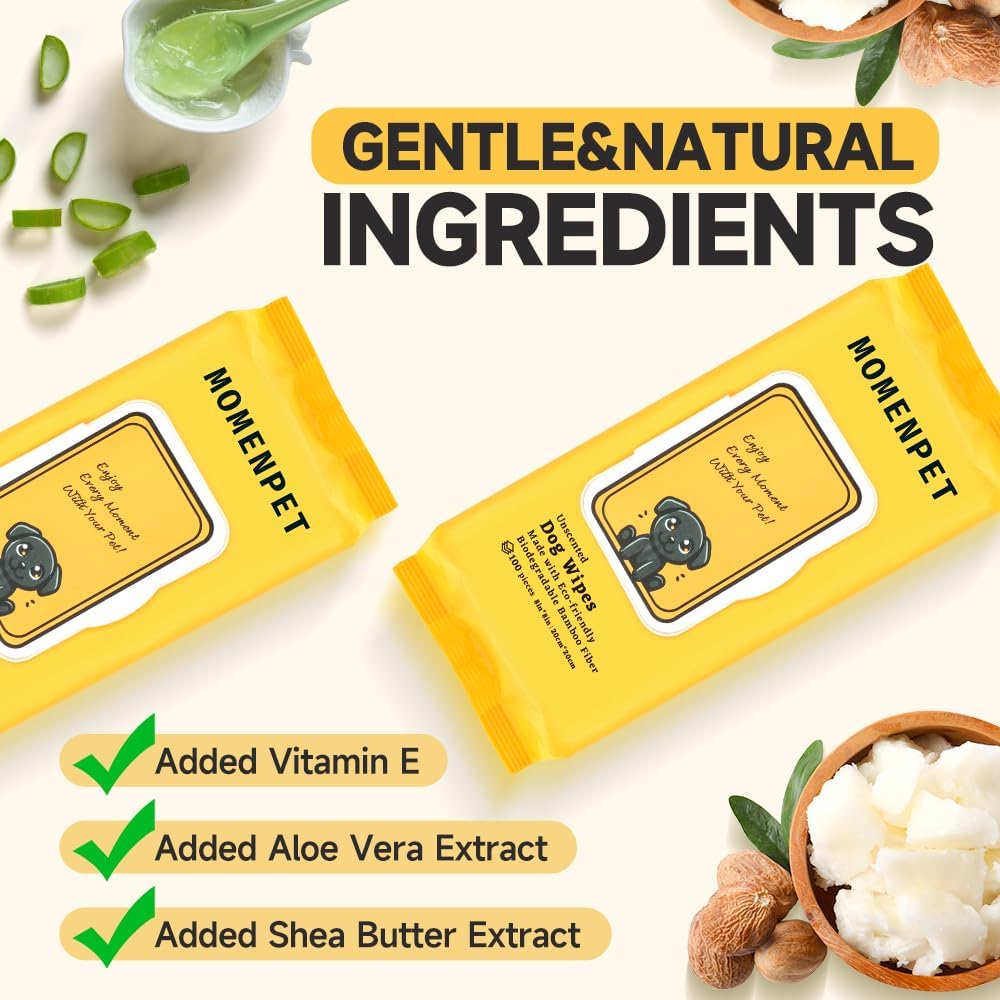 HIGH-QUALITY DOG WIPES: These textured wipes are the perfect everyday cleaning solution for your dog's paws, body, and butt. They are perfect for cleaning your dog or cat after walks, hikes, or in between baths. GENTLE INGREDIENTS: These dog wipes contain high-quality ingredients like aloe, shea butter, and vitamin E. Free from alcohol, parabens. Specially designed for pets, these wipes are Unscented, ideal for daily pet grooming. USER FRIENDLY: Made of thick, durable, FSC Certified material, our plant-based dog wipes have just the right amount of moisture for an effective clean every time. Soft, comfortable and very malleable. Each wipe measures 8" L x 8" W. These dog wipes are not flushable. (Due to the elasticity of dog wipes, there may be a size error of 0.2-0.3 in in width when cut by the machine.) MOMENPET: We prioritize pet better over human preferences. Our mission is to make everyday moments for people and their pets simpler and better. These pet wipes decompose naturally within 60 days, making them an choice for your pet and the planet. TEXTURED WIPES: Suitable for Dogs, Cats, Rabbits, Guinea Pigs, and More, including dogs, cats, rabbits, guinea pigs, and more. The textured wipes effectively remove dirt while keeping your pet's coat fresh and clean, perfect for indoor and outdoor use. › See more product details