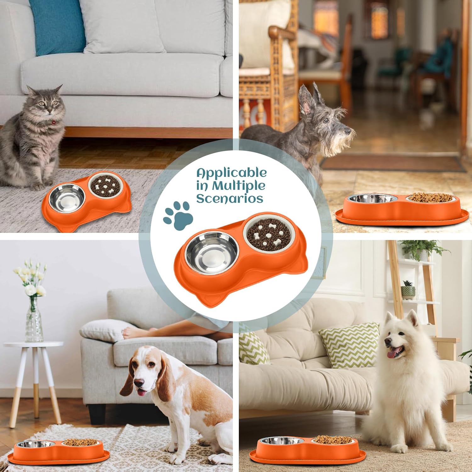 About this item 【Slow Down Eating & Improve Digestion for Fast Eaters】Our slow feeder bowl with strategic obstacles forces your pet to eat at a healthier pace, effectively preventing dangerous gulping, choking, vomiting, and bloating. Ideal for fast-eating puppies and large breeds. 【Complete 3-in-1 Set: Slow Feeder AND Water Bowl with Non-Slip Base】This all-in-one set includes a BPA-free slow feeder insert, a rust-proof stainless steel water bowl, and a non-skid silicone mat. It's the perfect slow feeder and water bowl set for every mealtime need. 【Durable & Safe: Food-Grade Stainless Steel and BPA-Free Plastic】Your pet's safety is our priority. The main bowl is made of easy-clean, food-grade stainless steel, while the slow feeder insert is crafted from durable, BPA-free plastic. The entire stainless steel slow feeder set is non-toxic and built to last. 【Non-Slip Silicone Mat for a Mess-Free, Stable Dining Experience】The flexible mat features strong suction cups to prevent sliding and shifting. The raised border contains spills and kibble, making this non slip slow feeder bowl a must-have for tidy homes and energetic pets. 【Easy to Clean & Fully Detachable for Ultimate Convenience】Effortlessly remove the slow feeder insert for dogs and stainless steel bowls from the base for cleaning. The entire set is top-rack dishwasher safe, ensuring a quick and hassle-free cleanup. › See more product details