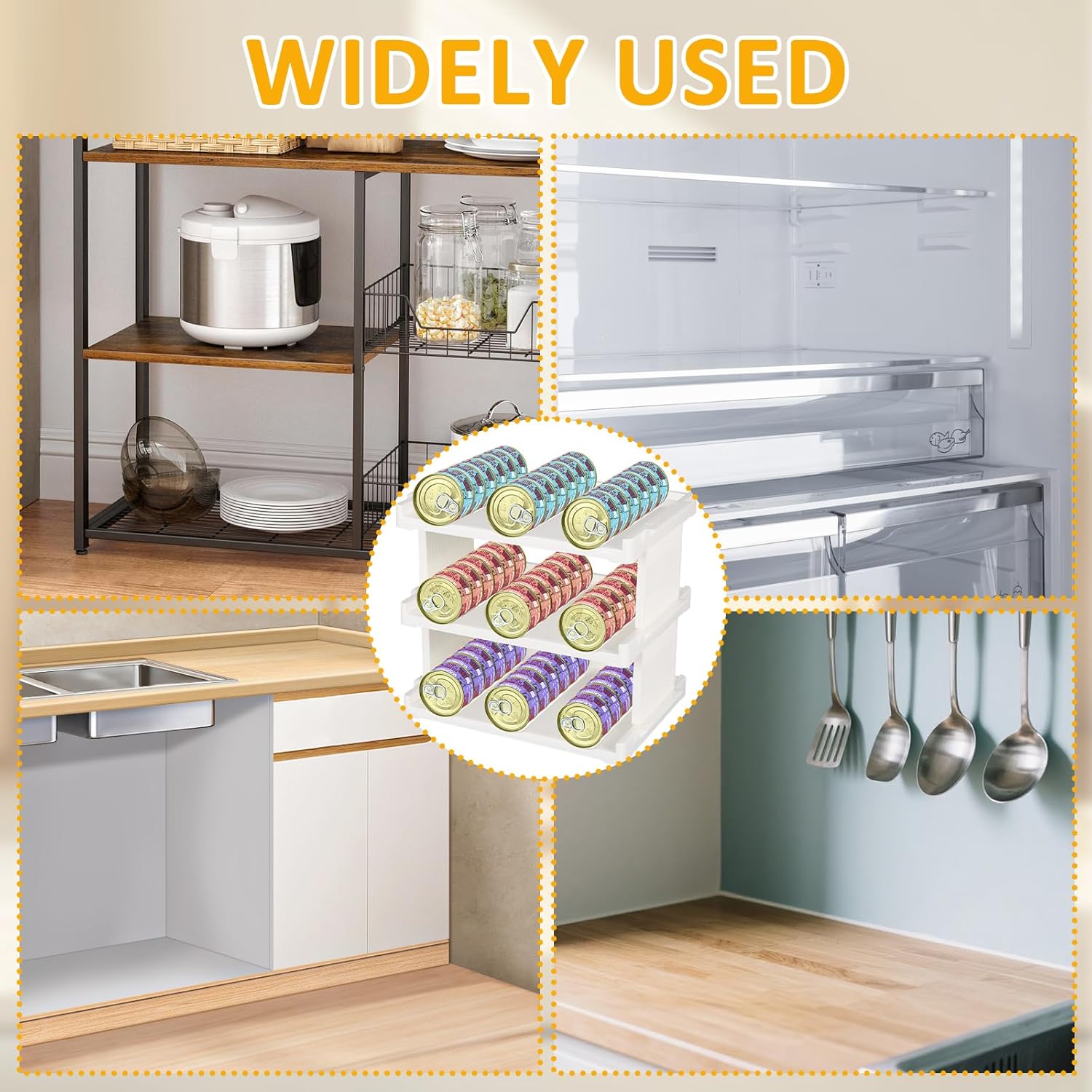 About this item Suitable for multiple sizes and shapes of tins: This cat food tin storage box accommodates all specifications: Standard cat food cans 3oz-12.5oz (holds 2.8oz×54 cans, 3oz×54 cans, 5.5oz×27 cans, 12.5oz×18 cans), tall pet food cans and irregularly shaped containers – say goodbye to wasted space. Effortless assembly: Recognising the importance of convenience, our can organiser is engineered for straightforward assembly and rapid setup. The adjustable frame folds for compact storage, allowing you to configure single- or double-tier storage according to your needs. No complex instructions or tools are required—simply follow the intuitive assembly process for swift completion. High-Quality and Durable: When storing valuable canned goods, quality is paramount. Our can storage rack is crafted from premium PP material. Its robust design withstands the weight of multiple cans without warping or buckling, ensuring long-lasting use. Tested to handle 20 pounds under normal conditions, it delivers reliable performance. Versatile Storage: Our canned food organiser isn't just for cat food tins. It can also hold water bottles or serve as a draining rack. Use it in cupboards, refrigerators, or on kitchen worktops for multiple storage solutions. Whether organising tinned goods in the pantry, keeping the fridge tidy, or creating a practical display area on your kitchen counter, this organiser handles the task with ease. Versatile Placement: This cat food storage rack fits effortlessly on wire racks, refrigerators, pantries, or kitchen countertops, enabling convenient feeding across multiple settings. › See more product details