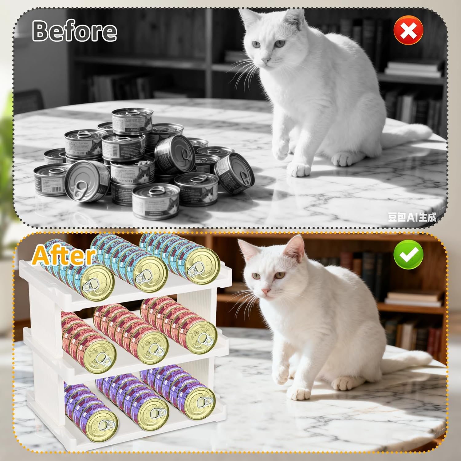 - Included Components: Cat Food Can Organizer