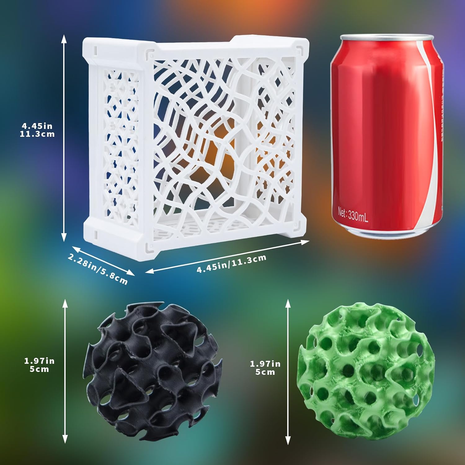 About this item 【3 Pack Set】 This aquarium decoration set includes three distinct pieces: one textured hollow ball in black, one in green, and one white hollow cube. This variety allows you to create a more dynamic and interesting layout in your freshwater tank, providing multiple points of interest for your aquatic life. 【Fish Tank Accessories】 Designed as functional tank accessories, these pieces serve a dual purpose. The textured surface and numerous holes of the balls and cube provide an excellent surface for beneficial bacteria to colonize and for moss or other aquatic plants to easily attach and grow. 【Aquarium Decor】 Beyond functionality, they add a modern, minimalist aesthetic to your underwater scape. The natural black, green, and white colors blend well with various substrates and backgrounds, helping to create a beautiful and natural-looking habitat for your fish, shrimp, and snails. 【Easy to Use】 Simply rinse the decorations with clean water before placing them in your established aquarium. Their hollow and lightweight design makes them easy to position on the substrate or among other hardscape elements to achieve your desired aquascape look. 【Wide Application】 Perfect for a range of freshwater aquarium setups, including shrimp tanks, planted tanks, and community tanks. They offer essential hiding spots for shy shrimp, small fish, and fry, helping to reduce stress and promote natural behaviors in your aquatic pets. › See more product details