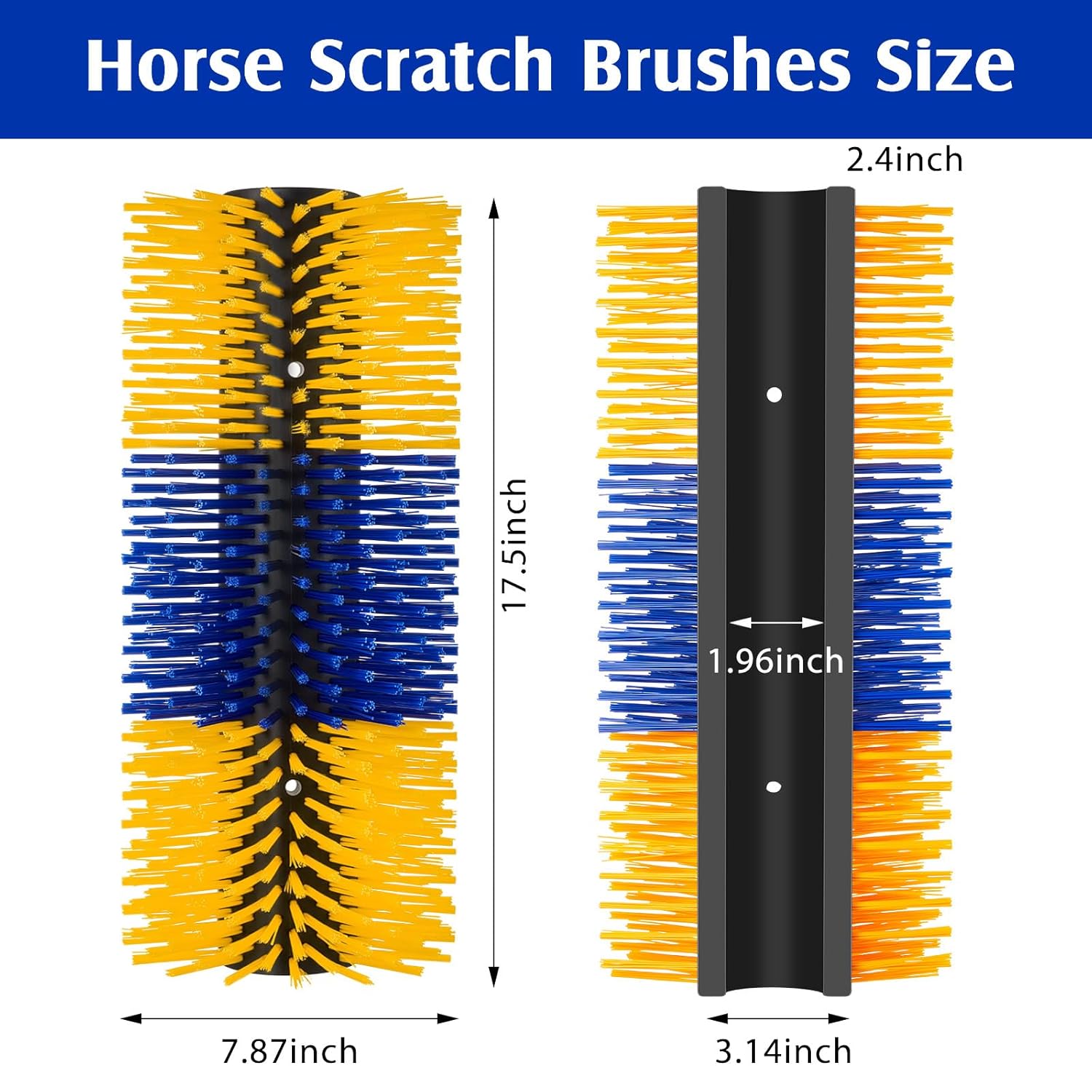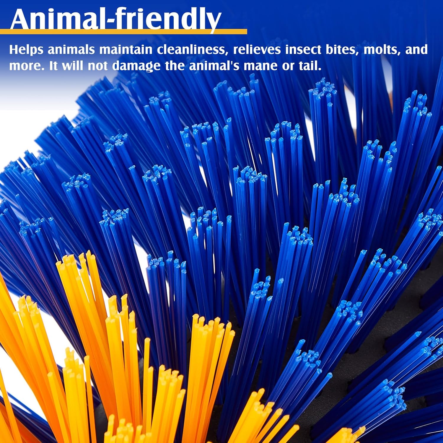 Features: Gifting this livestock scratching brush is a nice way to express your love for farm animals. It makes an ideal and practical gift for farming enthusiasts, effectively meeting the various grooming needs of an array of farm animals. Our horse grooming brushes stand out with the bright colors and contemporary design. Not only is it practical, but this brush also adds a beautiful splash of color to your farm equipment. This product proves that practicality and visual appeal can go hand in hand. Specifications: Material: mainly nylon Color: blue, yellow Size: about 17.32 x 7.8 x 3.9 inches/ 440 x 198 x 99 mm Package includes: 3 x Livestock scratch brushes with screws, anchors accessories Notes: Manual measurement, please allow slight errors on size. The color may exist a slight difference due to different screen displays. Small items are included, please keep them away from pets in case of choking risk. Before purchase, confirm whether the product size is suitable for your pet, and observe the pet's reaction when using. Please remove the product in time if there is any discomfort