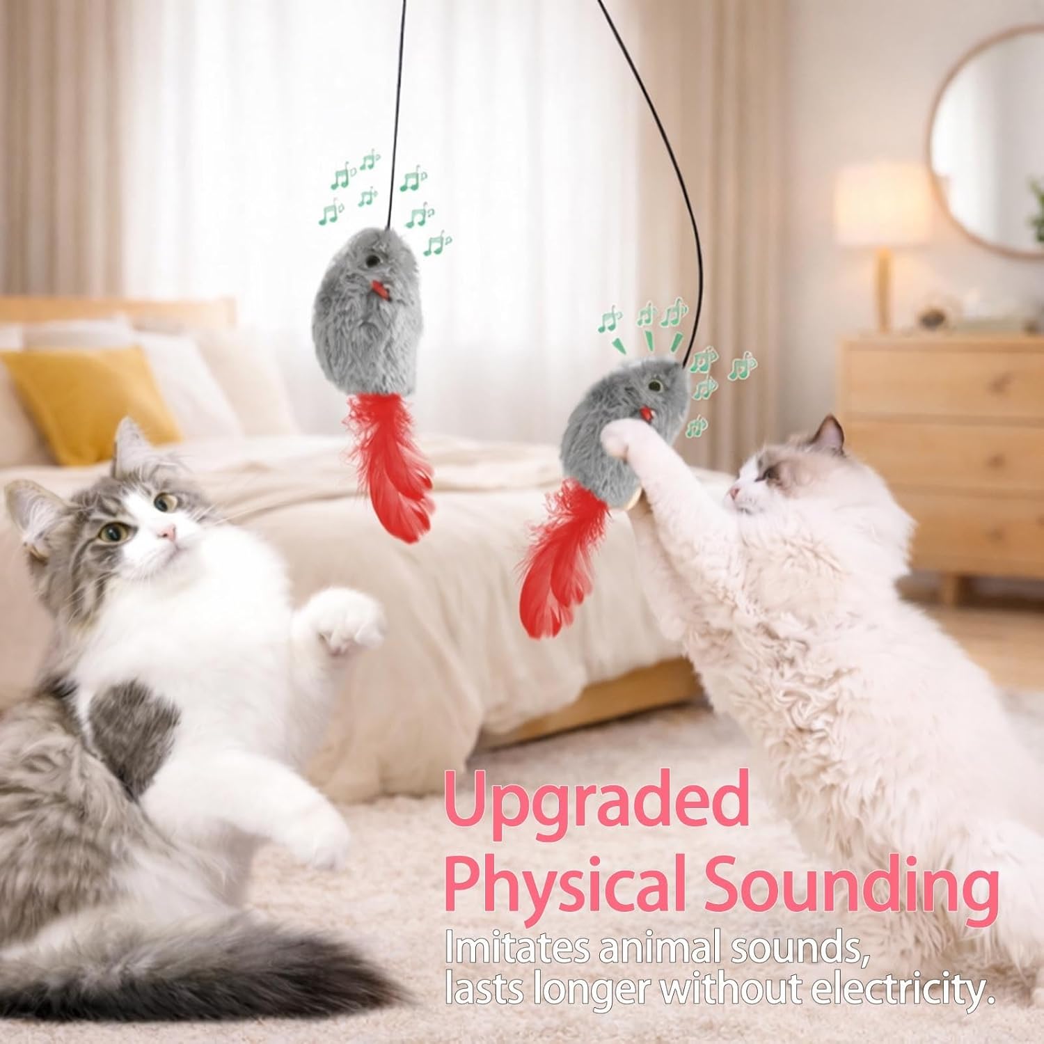 Does your feline friend lose interest in toys too quickly? Keep your cat engaged and entertained with our premium 3-Pack Interactive Cat Toys featuring irresistible catnip and feather attachments. Designed for playful cats, this set combines three essential elements: the allure of catnip, the fluttering motion of feather bird toys, and the interactive thrill of string toys. The natural catnip filling stimulates your cat's senses while the durable feathers mimic prey movements, triggering their hunting instincts. Each toy features a secure string design for safe interactive play between you and your pet. We understand what makes cats tick. That's why we've crafted these toys using high-quality materials that withstand even the most enthusiastic play sessions. The varied textures and movements provide endless entertainment, preventing boredom and encouraging healthy exercise. Imagine your cat leaping with joy, fully immersed in playtime with these engaging toys. Watch as they bat at the feathers, chase the strings, and roll happily with the catnip-filled mice. Perfect for solo play or bonding moments, these toys will become your cat's new favorites. Treat your feline companion to hours of stimulating fun today!