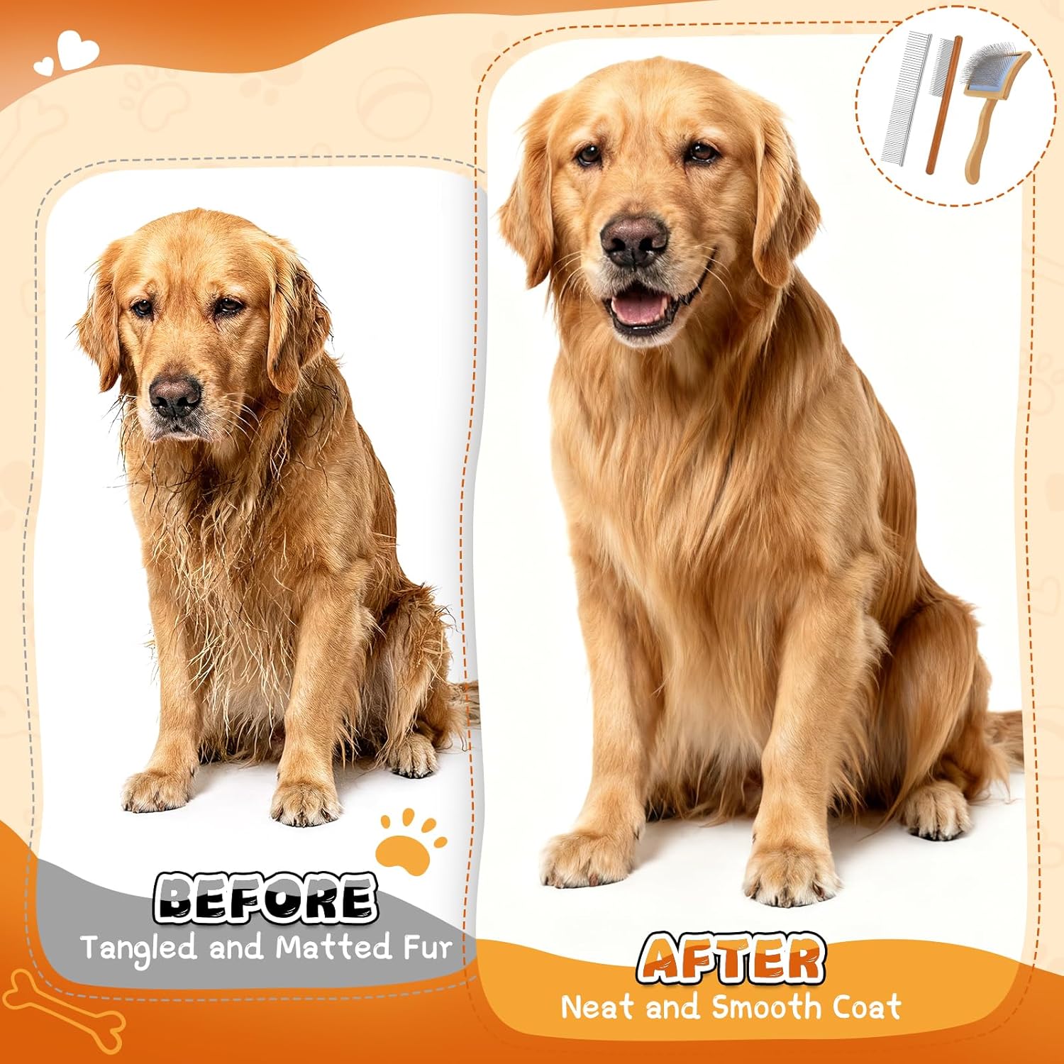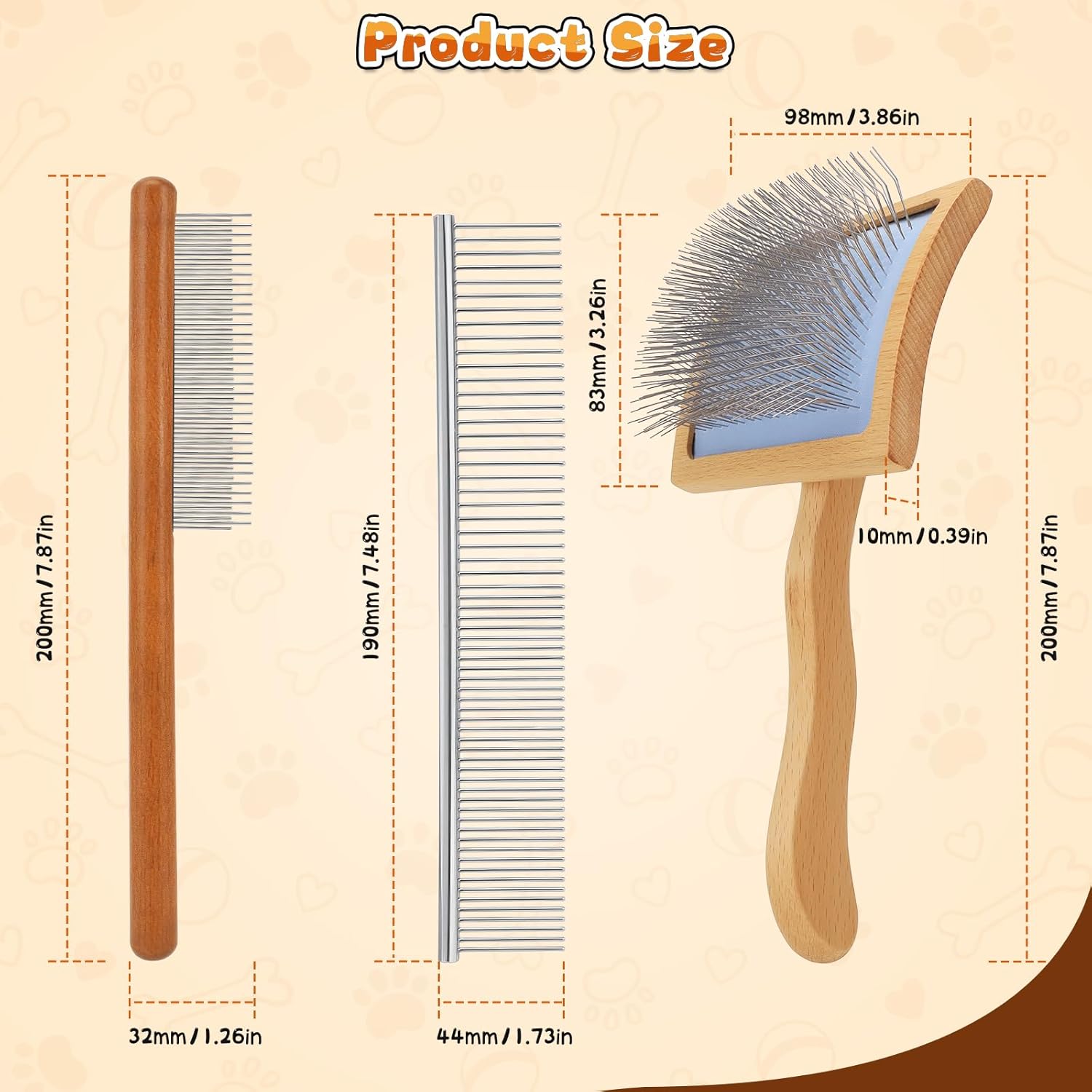 About this item - You've finally found it! It's the ideal choice for shedding breeds, the ultimate tool for detangling matted fur, and the professional grooming tool beloved and recommended by pet groomers. The Makerfire slicker brush is specifically designed for shedding, detangling, and creating the perfect grooming look - This dog slicker brush removes trapped undercoat with fewer strokes. Extra-long angled pins penetrate deep into the coat to effectively remove dead hair and loose undercoat. Hair is securely trapped within the brush until removed. Ideal for double coats, curly coats, long straight coats, dense coats, and fluffy coats, especially during shedding seasons. Achieve optimal results with minimal effort using this dog slicker brush. It's your indispensable, reliable helper - This slicker brush for dogs set featuring two stainless steel detangling combs crafted from premium, durable stainless steel, Effectively removes knots, mats, and loose hair while promoting blood circulation. This slicker brush for dogs can also massaging the skin, Prevents static electricity, maintaining your dog's coat shine and health - This Poodle brush Long, dense pins are perfect for fluffy, curly, or cottony coats. Ideal for shaping the head, topline, and legs. This Poodle brush suitable for all dog sizes: Suitable for small and large breeds, curly-coated dogs, single- and double-coated pets. Especially recommended for Poodles, Bichon Frisés, Labradoodle mixes, Golden Retriever mixes, and other Poodle crossbreeds - This doodle brush each comb tooth features a 140° angle, 25mm length, and rounded tip for gentle grooming. Teeth are embedded in soft cushioning for flexible bending and smooth penetration through fur. This doodle brush unique ergonomic non-slip handle design effectively reduces hand and arm fatigue. The highly curved back structure provides precise control, flexible movement, and directional mastery during grooming. Grooming multiple dogs has never been easier - This goldendoodle brush is crafted using advanced manufacturing techniques. Each comb undergoes rigorous testing over ten thousand times, from the bristles to the handle, ensuring long-lasting durability even with daily use, Enjoy a 1-year manufacturer's warranty against defects. Should you encounter any issues during use, please contact us anytime, We will provide a satisfactory response within 24 hours. We sincerely hope this goldendoodle brush brings you and your beloved pet joyful and comfortable moments together! › See more product details