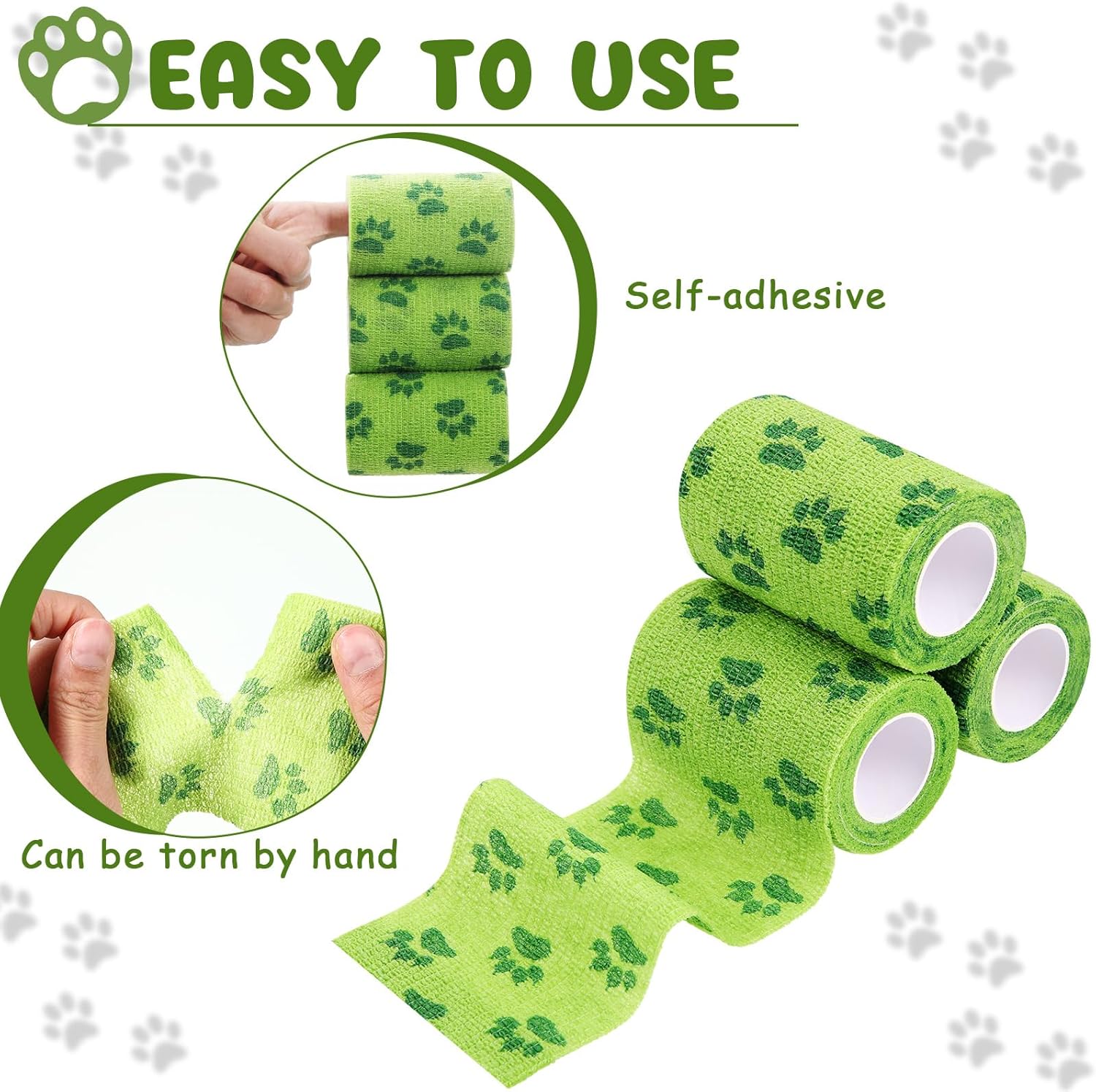 Features: Our dog bandage wrap for wounds no chew are more than just practical, they come with a touch of style. The conspicuous green color offers a distinctive and trendy look that stands out. Moreover, they're widely applicable, fitting on different body parts with comfort and ease. With dimensions of approximately 3 inches x 5 yards/ 7.5 cm x 4.5 M, the bitter dog bandage is spacious enough to cover various sized injuries, reinforcing customer convenience. Specifications: Material: non woven Color: green Size: about 3 inches x 5 yd/ 7.5 cm x 4.5 M Package includes: 3 x No chew bandage Notes: Manual measurement, please allow slight errors on size. The color may exist a slight difference due to different screen displays