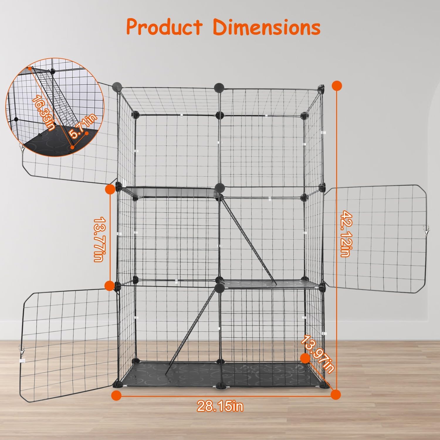 About this item 3 Tier Cat House: This cat house provides personal space for your furry friends to play, sleep, drink and eat, and can also be used to store plenty of cat supplies. No need to be bothered by the messy cat stuffs on your house, keep your room neat and well organized. Stable Construction: 3 Tiers cat villa can accommodate 1-2 small&medium figure cats, adopts 3 doors for cats to freely get in and out. 2 ladders are designed for flexibly climbing without apply pressure on cat’s joint. Stable construction make each tier bear up to 14lbs capacity, won’t crack, bend or fall apart easily. Durable Iron Material: Made of thickened iron pipes, our cat cage has excellent durability and stability. Rounded plastic buckles is safe, protect your hands from scratching and ensure your cats’ safety. This cage has long lasting service life and can accompany your cat from kitten to senior. Complete Accessories: We provide complete accessories to install a 3 tier cat house. What’s more, you can combine those accessories into different sizes according to your preference. Make a customized house for your lovely cat. Easy To Clean: Rust-resistant material is easy to clean, you can wipe it with soft cloth. Suitable for small and medium sizes pet, like ferrets, rat, rabbits, kitten, chinchilla and so on. › See more product details