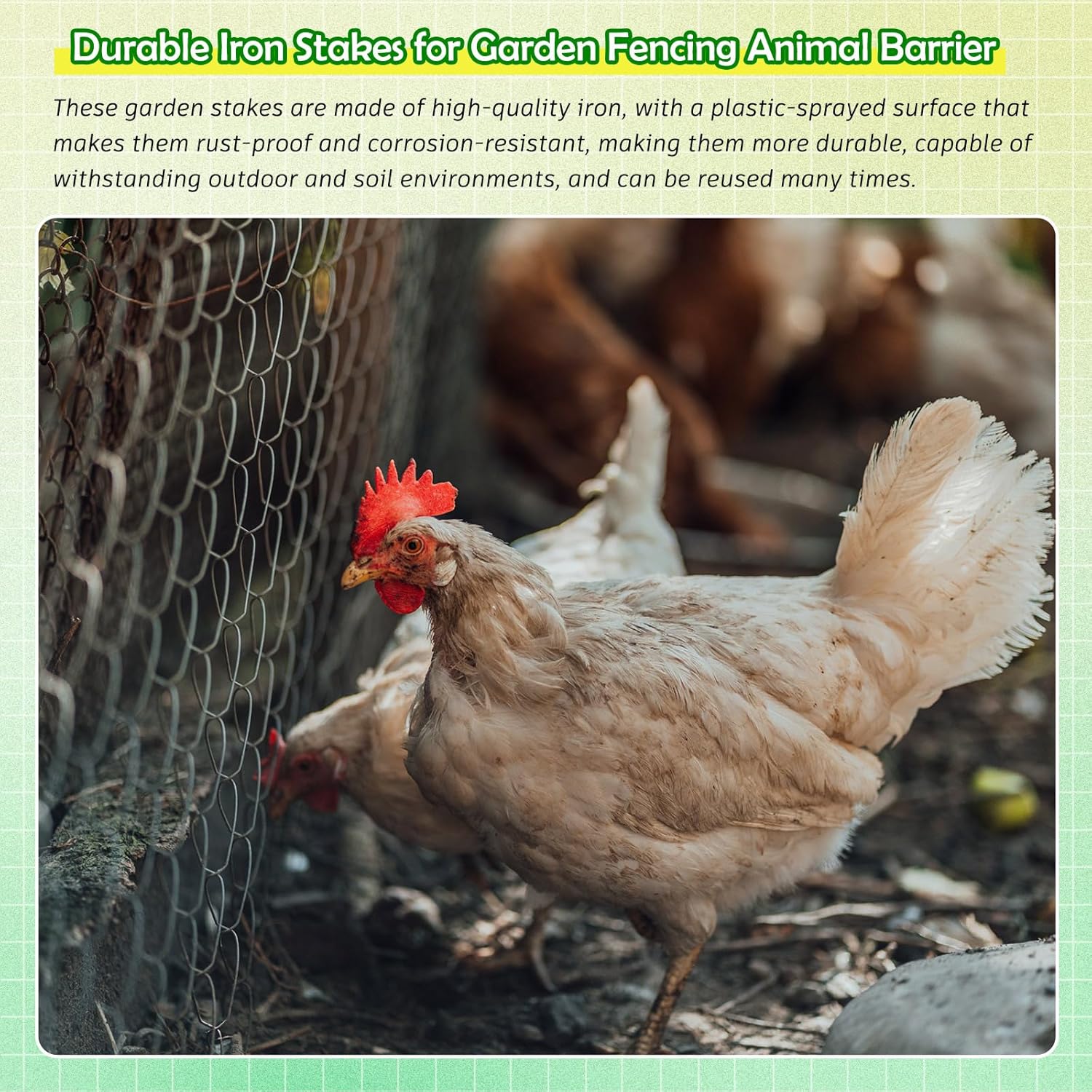 About this item Reliable Material: you will receive 30 exercise pen ground stakes, the wire diameter is 4mm, the color is black; These ground stakes are made of iron, with spray coated surface, rust proof and corrosion-resistant, more durable, able to withstand outdoor and soil environments, and can be reused many times Strong and Stable: benefit from U shaped ground stakes that provide both strength and stability, they can securely hold the fence and protect your gardening work even if the dog tries to dig a hole, while also preventing the dog from running loose High Compatibility: these dog fence spikes have an inner width of 0.79 inches, specially designed for mesh fences, ensuring that the bottom of the garden fence fits perfectly with the ground, ensuring better compatibility during use; Of course, they are also great for fixing vegetable vines, thin water pipes or some ground decorations Pointed Tip for Easy Insertion: these dog exercise pens feature a pointed tip at the end; And the long side of the pile is 9.8 inches and the short side is 7.9 inches, it ensures an easy insertion into the ground Widely applied: embrace the multiple uses of these metal ground stakes, Can be applied to fix landscape fabrics, dog fences, wire mesh, tents, turf, soaker tubes, drip irrigation tubes, vegetable and flower vines, etc.providing you with a variety of convenience and support › See more product details