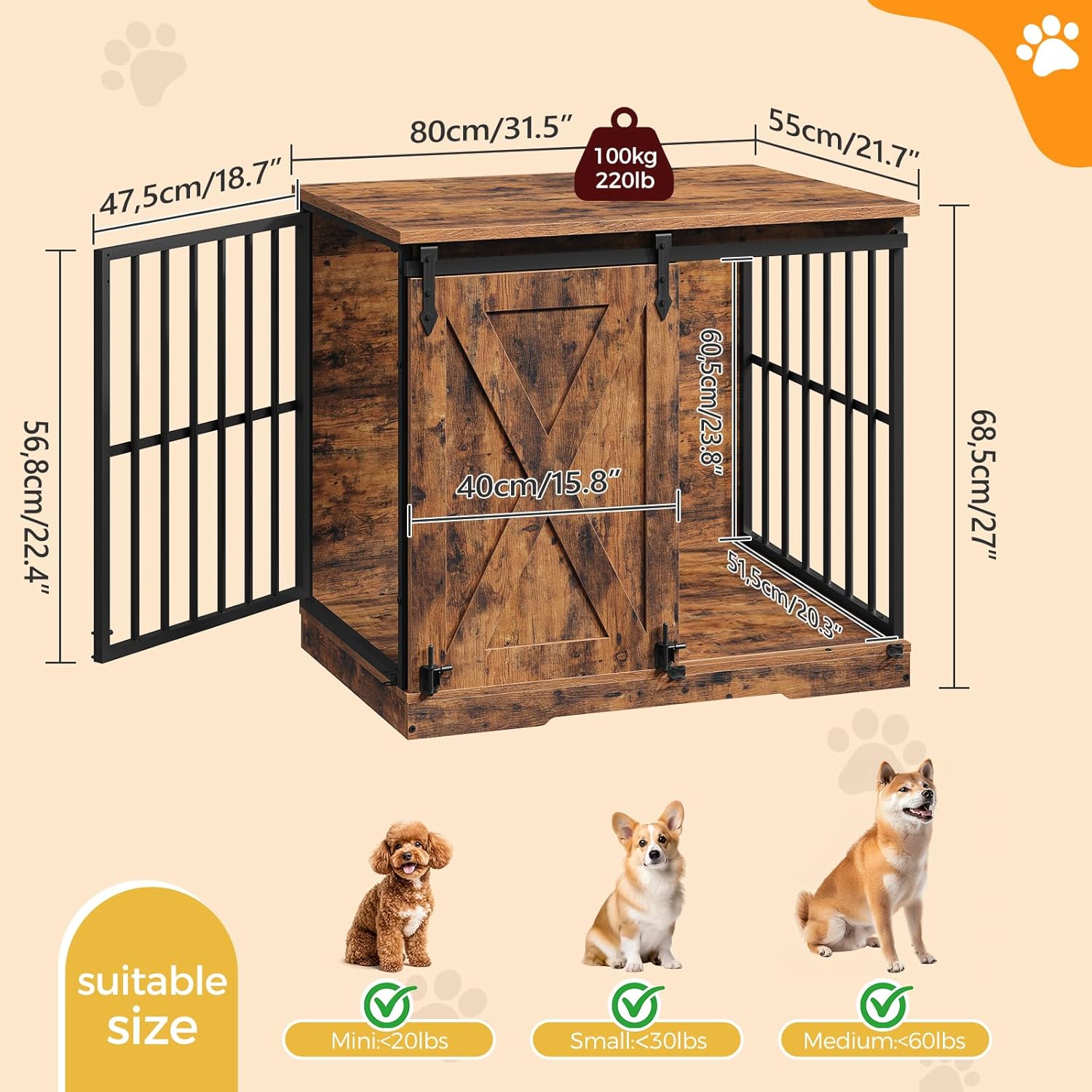 MAHANCRIS Cat Litter Box Enclosure, Indoor Cat House with Divider Specifications Color: Rustic Brown Material: Engineered Wood, Metal Product Size: 31.5"L x 19.7"W x 19.7"H Package Contents:1 x Cat House, 1 x Accessory Kit, 1 x Instructions MAHANCRIS Farmhouse Dog Crate Furniture Side Table Specifications: Color: Rustic Brown, Black Material: Engineered Wood, Metal Product Size: 31.5"L x 21.7"W x 27.0"H Product Weight: 40.5 lb Max. Static Load Capacity: 220 lb