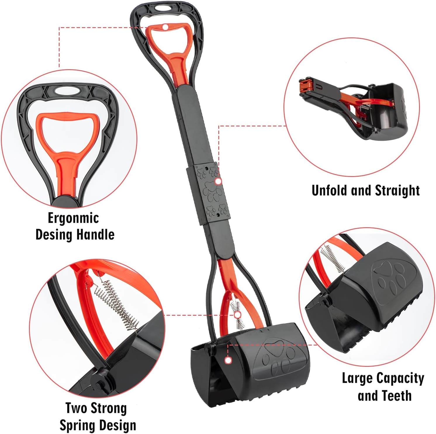 One Purchase Get 2: Pooper Scooper 33" XL hands away from poop smell. Buy two 33-inch items for under $13 each– Great savings compared to buying one! Two different attractive colors keep you in a good mood while cleaning. New Upgraded Products: Extra Length Hand design than old one. We pay attention to your needs, especially design a longer and bigger pooper scooper for large dogs. No bending and can reach the dog poop from farther away, reducing stinky smell. Why buy 2 PCS? If dog pooper scooper suddenly breaks, or no time to clean it, what could use for the next walk? A wise owner will always keep two, one for use, one as a backup, so you will never have any worries. Easy Use: No assembly needed, slide down to lock or unlock and fold, easy to use, carry, and store. Dog poop goes into the dog poop scooper and your hand won't touch poop. Placed one poop scooper in the door for any time dog walk. Another folding in the trunk of the car for a sudden urge to go outdoors. Easy to Clean: TIMINGILA Dog Pooper Scooper meets your expectations to clean up pet waste, no more feeling of poop in your hand. Clean Poop pooper picker just by washing off with the hose, helps you pick up pets poop and release the mess cleanly. Plastic material is rust-free and lightweight, lasts for years.A good choice for households with more than one dog. › See more product details