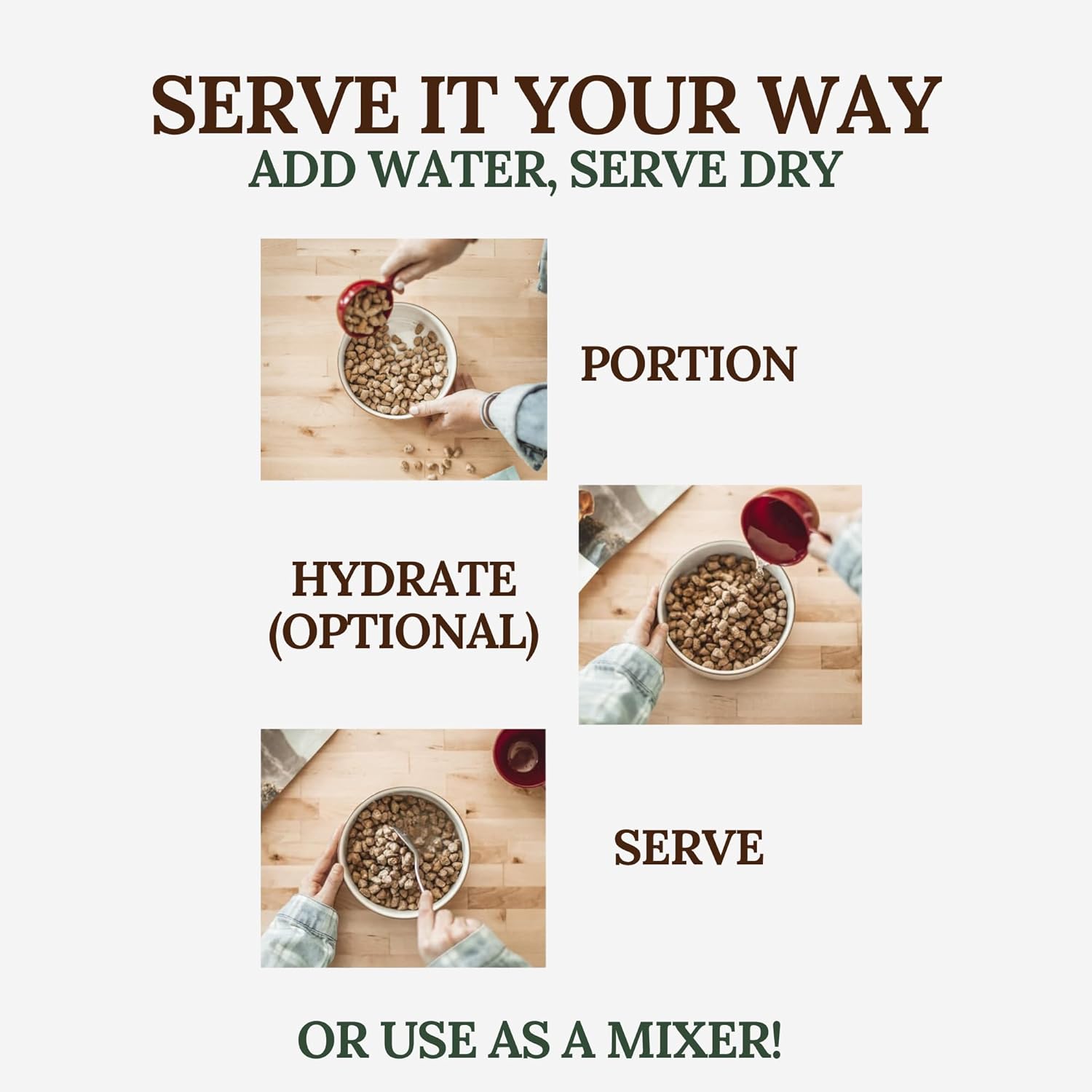 - Directions: Serve as a complete and balanced meal or add to your dog's current food as a nutrient-boosting mixer/topper.