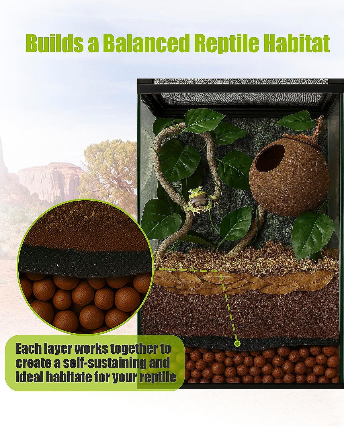 This reptile substrate barrier keeps your bioactive terrarium healthy by separating ABG and other mixes from the drainage layer, preventing clogs, excess water buildup, and stagnant conditions. The breathable mesh maintains proper airflow and humidity while blocking loose soil and debris. Made from lightweight, durable material, it’s friendly for reptiles, amphibians, and invertebrates. Includes three 18.1" x 18.1" terrarium substrate barriers, easy to cut and fit versatile setups.