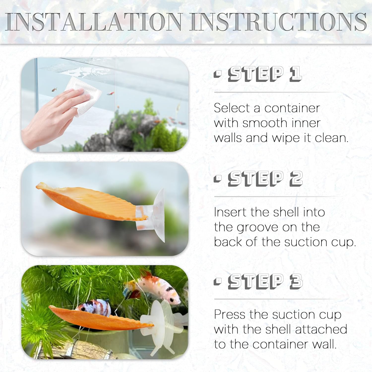 - Included Components: 3PCS Betta Fish Hammock Shells, 3PCS Suction Cups