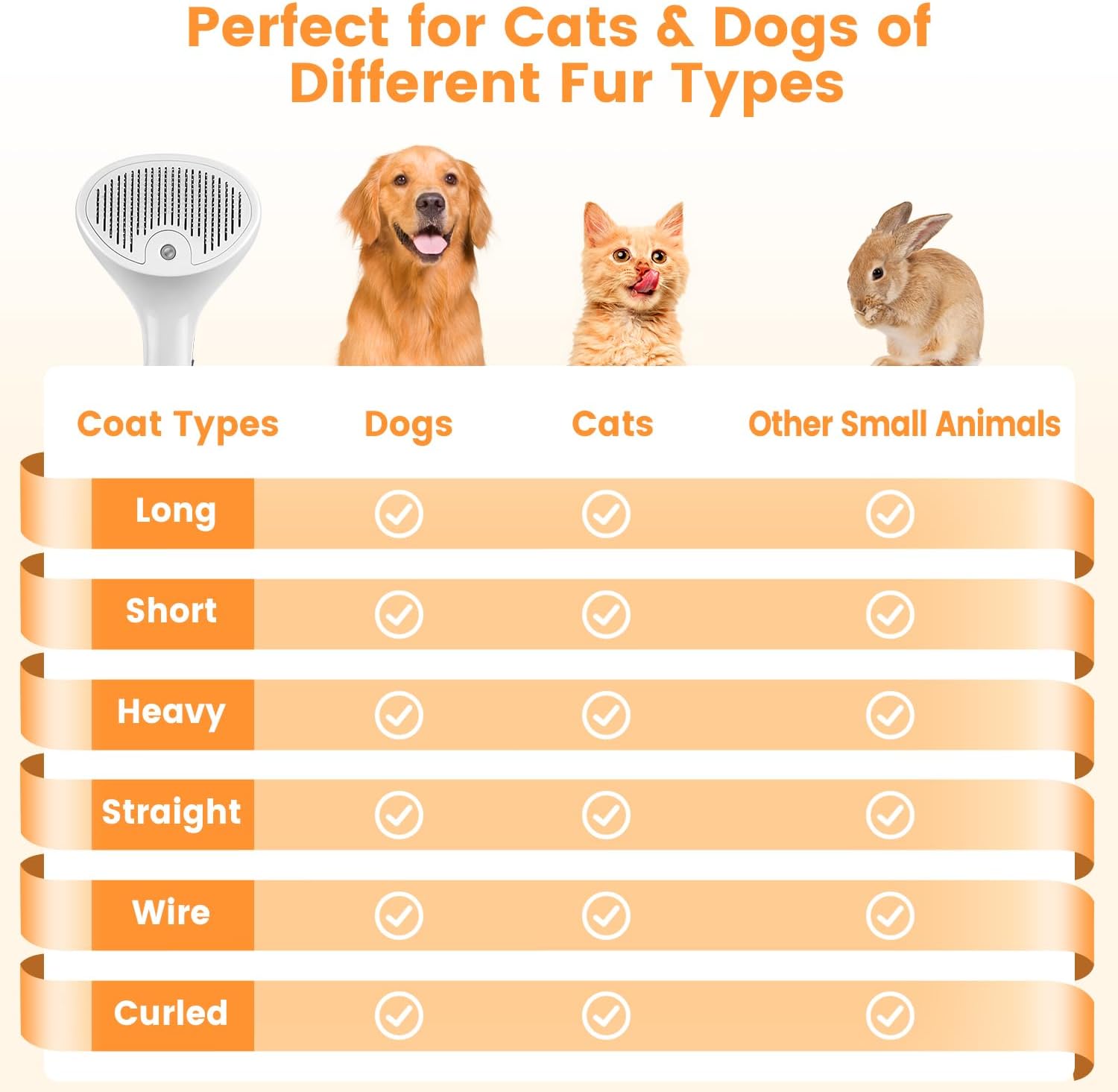 About this item 4 in 1 Cat Steam Brush: Our 4 in 1 cat steam brush is designed for shedding, grooming, cleaning, and massaging. Specifically made for indoor cats , the pet steam brush effectively removes loose hair and tangles, keeping your home clean and your pets comfortable. 【Note】Our cat brush only turns water into mist, not heating water into hot vapor. One Click Self Cleaning Cat Brush: Our cat brush features a one click self-cleaning button. After grooming, simply press the cleaning button, and the hair easily falls off from the bristles, making cleanup hassle-free without hair scattering everywhere. Skin-Friendly Dog Steam Brush: The humanized design bristles of our dog brush, enveloped in a protective gel, ensures that your pet's skin remains unharmed. Effectively removing dead skin and loose fur, it improves hair health. Pet Steam Brush: Experience a comfortable grooming session with our extral mist spray function. Simultaneously spraying while grooming reduces static and flying hairs, making the process more comfortable and seamless. This helps to minimize tangling and knotting issues. You can add conditioner or softening agents to the spray, enhancing your cat's hair softness and shine. Low Noise Design: we've reduced the spray working noise of the cat brush to 30dB, which keeps pets calm and relaxed during spraying, avoiding scaring your pets. Perfect for anxious cats and dogs. Sturdy and Durable Pet Brush:Our deshedding dog brush crafted with high-quality ABS plastic for the outer shell and stainless steel for the bristles, our product is robust and long-lasting, resistant to damage. › See more product details