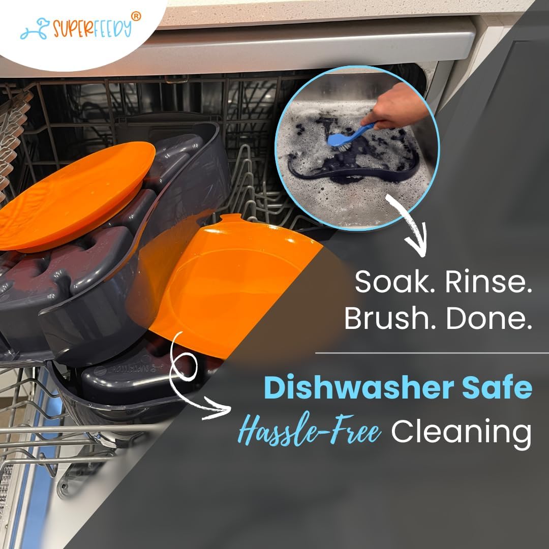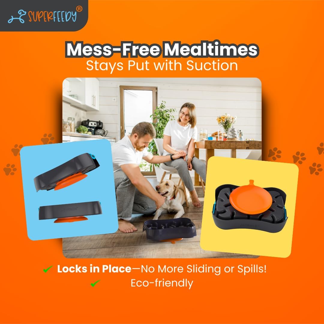 About this item SUPER FEEDY PATENTED 4-in-1 DESIGN: Versatile all-in-one feeding solution with our large slow feeder dog bowls, lick mat for dogs, pet food container, and travel dog bowls. Patented design for eco-conscious dog owners, each product, including our engaging slow feeder dog puzzle toy for medium to large breed dogs, is sustainably made from recycled materials. Crafted in Australia and vet-approved, our comprehensive range is tailored to enhance your dog's eating, ensuring a healthy and comfortable mealtime experience. SLOW FEEDER DOG BOWL: Slow Feeder Dog Bowl: Expertly designed for large breeds. This 10 cup capacity dog food bowl features a dog puzzle to encourage slower eating and healthier habits. Our slow feeder dog bowls large breed design ensures your big dog eats slower, promoting healthier digestion and more enjoyable meal times. Enhance your dog's mealtime with our innovative bowl, meticulously crafted to enrich your large breed companion's dining experience, combining fun and functionality for their ultimate well-being and enjoyment. REVERSIBLE LICK MAT: Reversible dog lick mat: Elevate your dog's mealtime with our dog slow feeder bowl, featuring a reversible dog lick mat for a versatile dog feeding station. This unique setup, perfect as part of your dog enrichment toys, allows you to serve various dog food recipes or accommodate two dogs at once. The lick mat for dogs with its double-textured surface ensures your dog is engaged, preventing rapid eating. Our slow feeder, doubling as a dog treat puzzle, is ideal for spreading wet food, yogurt, or peanut butter, transforming feeding into a slow, enriching experience for your dog. FOOD PREP & DOG FOOD STORAGE CONTAINER: Elevate your pet care essentials with our versatile dog food storage container, doubling as a dog bowl slow feeder for medium and large-sized dogs. This all-in-one dog feeder merges food prep, serving, and storage, boasting a 10 cup capacity and crafted from durable recycled plastic BPA-free material for safety and longevity. Simplifying mealtime, it's vet-endorsed for its innovation and durability, making it an indispensable addition to your dog essentials, ready to tackle lively mealtime antics. TRAVEL DOG BOWL: Travel dog bowl: Elevate on-the-go meal times with our travel dog bowls, ingeniously designed as an all in one dog slow feeder to encourage your dog to eat at a healthier pace. Unlike regular dog food bowls, our slow feeder turns every meal into a dog puzzle, perfect for picnics, camping, or weekend getaways. This portable dog feeding station ensures your furry friend enjoys their meals slowly and healthily, making every adventure worry-free. Ideal for dogs who eat too fast, it's the ultimate solution for healthy feeding, anywhere you go. › See more product details