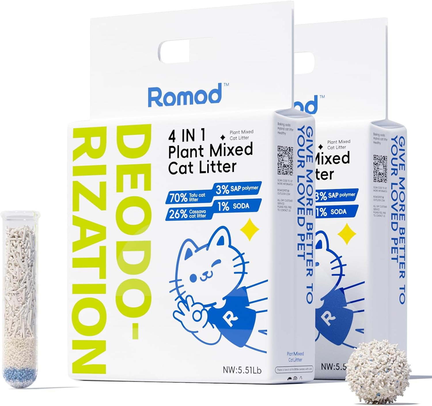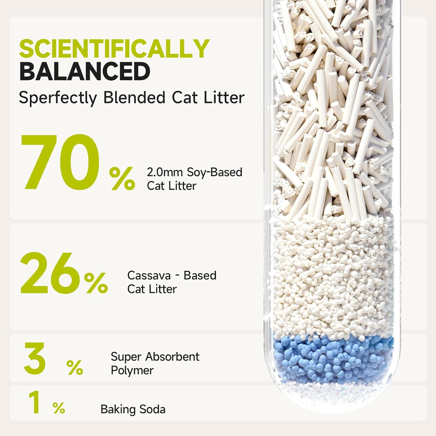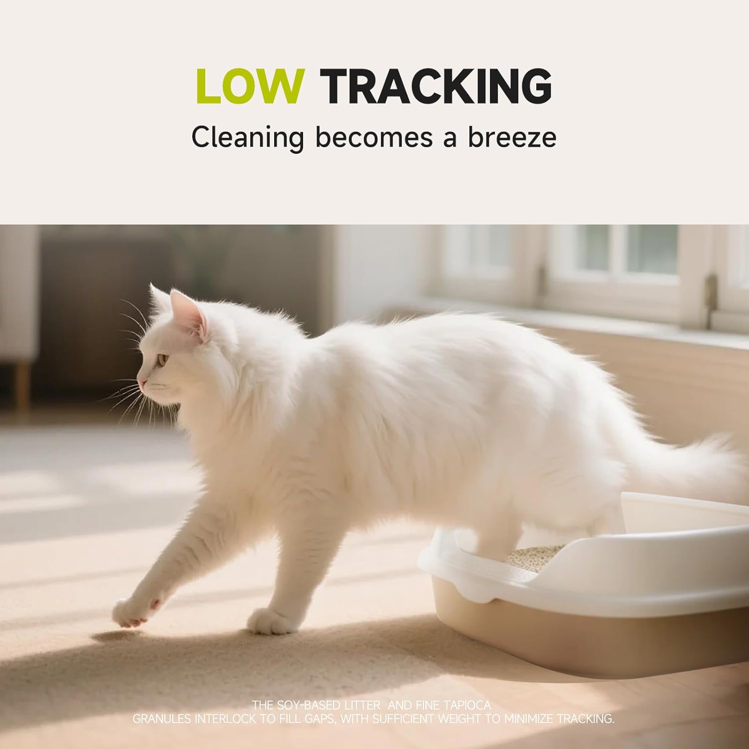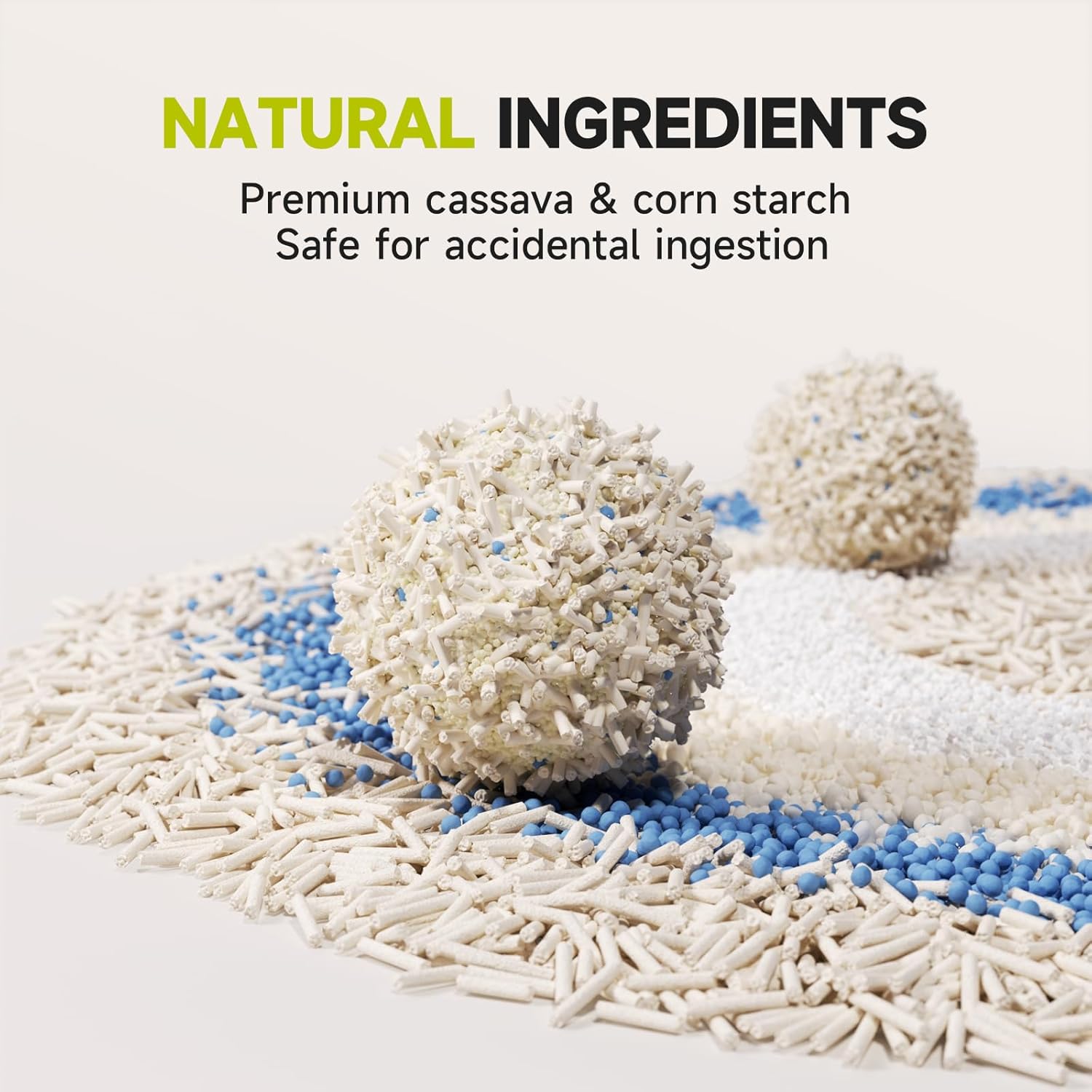 About this item 4-in-1 Premium Multi-Ingredient - A perfect combination of tofu litter, cassava litter, SAP (super absorbent polymer), and baking soda, offering natural and efficient performance. Quick Clumping for Easy Cleaning - Forms tight, solid clumps upon contact with moisture, making cleanup faster and keeping the litter box clean and tidy. Superior Absorption and Odor Control - Cassava starch and SAP ensure excellent absorption, while baking soda neutralizes odors, effectively reducing smells from urine and feces. Extend the use of cat litter. Dust-Free and Safe - Low-dust tofu formulation protects the respiratory health of both cats and owners while minimizing litter tracking. Not easy to stick to the bottom. Eco-Friendly and Flushable - Made with biodegradable materials, this litter is safe to flush, offering an environmentally friendly and convenient solution for you. › See more product details