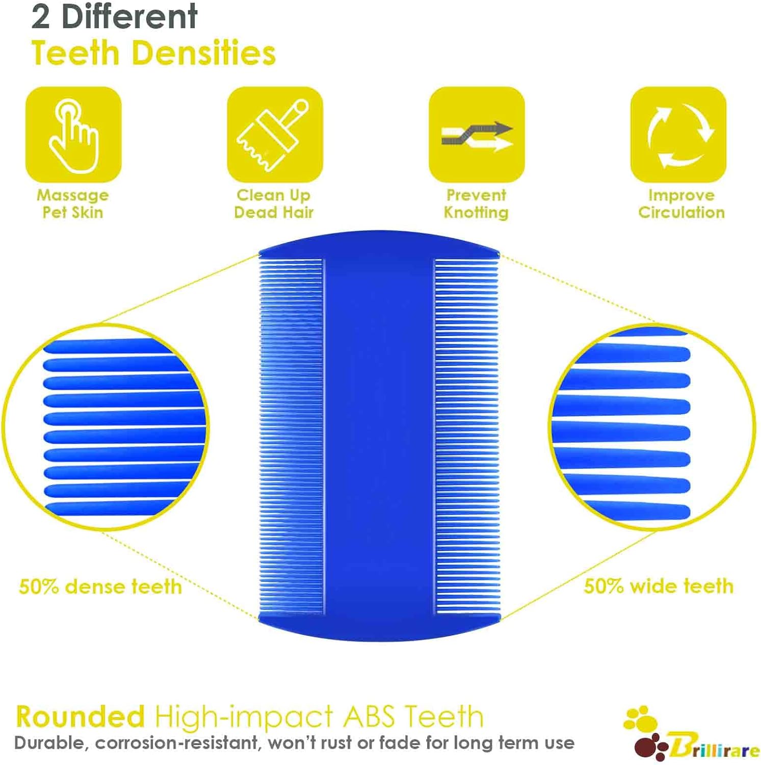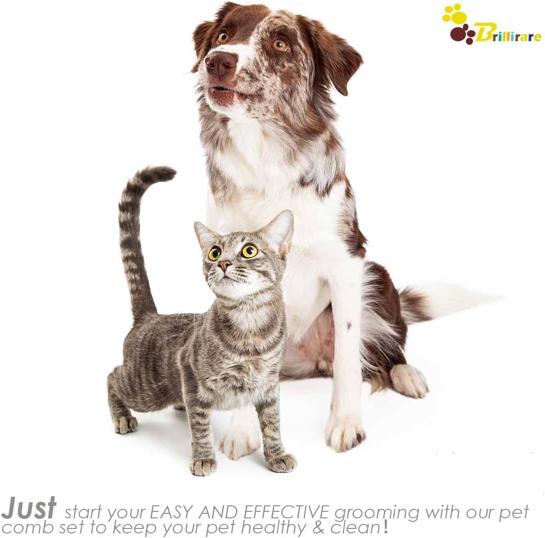 About this item THOUGHTFUL SET: Our pet grooming comb set includes 4 combs, 1 tooth comb, 1 double sides lice comb, 1 long-needle & 1 short-needle comb to meet different needs. Perfect for straightening out the knotted tangles hair, as well as finishing and fluffing PREMIUM MATERIAL: The combs have high-quality stainless steel teeth tightly embedded in the ergonomic ABS grip. The double-sided comb is made of high-impact ABS, durable & corrosion-resistant, won’t rust or fade, withstands wear & tear in long term use ROUNDED EDGES: Every comb tooth is finely polished, won’t scratch pets’ skin, easily removing lice, flea, mess, mucus, stain etc. Ideal for combing soft fur nearby eyes, ears and fine hair of the legs. Let you and your pet enjoy this fun time together MULTIFUNCTIONAL & SAFE: Our rounded teeth would also support the pet health by boosting blood circulation, massaging skins, removing loose fur, undercoat, dander, knots, no matter long & short haired dogs, cats with thin & thick coats or sensitive skin SUITABLE FOR ALL COAT TYPES: One set of our combs is enough for EASY & EFFECTIVE grooming for rabbits, guinea pigs, ferrets. Regular use of this ergonomic dog comb can help reduce shedding, promote healthy skin & coat, easy to clean by just rinsing › See more product details