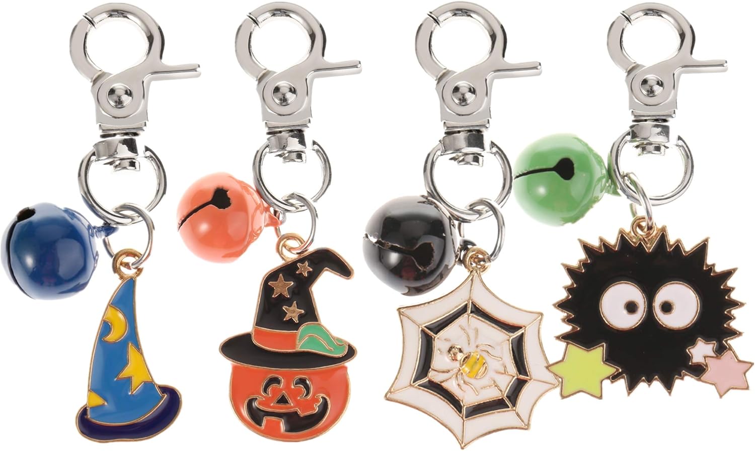 Super cute bells in vivid color and halloween pendants,they can match the collar of your pets in the coming halloween.They aren't too terribly loud like other bells you've had, which is nice. your can hear her, but it doesn't wake you up at night.