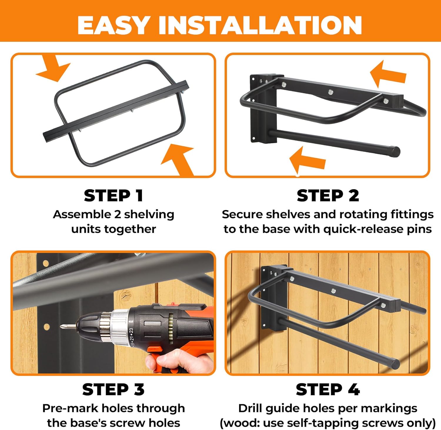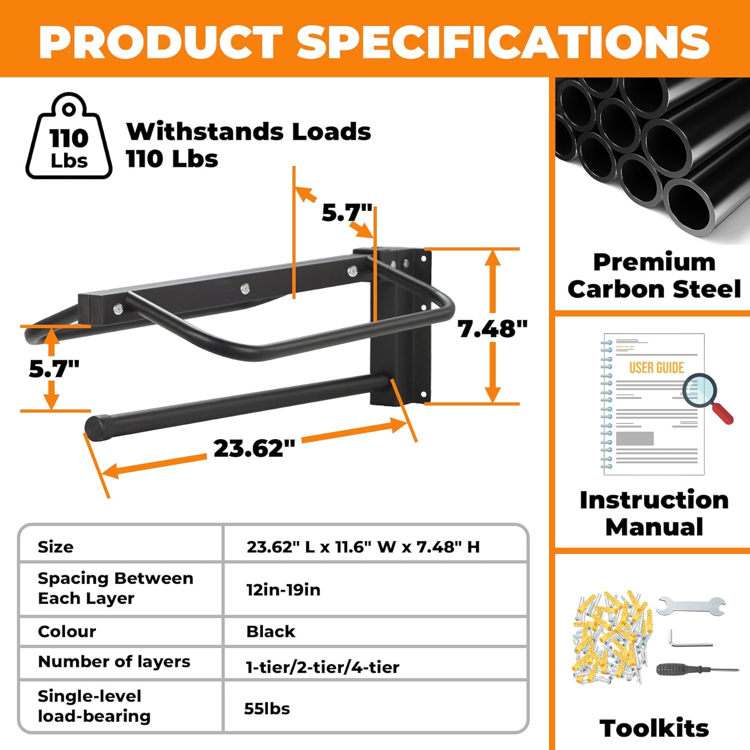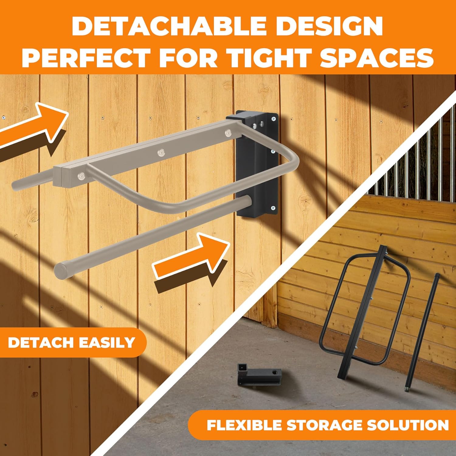 About this item πππ π ππππππ πππππππ ππππποΌThis 4 pcs saddle rack (23.62" L x 11.6" W x 7.48" H) offers ample space to store equestrian gear, keeping them neat and clean. As a practical saddle stand, its 0.8in thickened metal tube ensures sturdiness while maximizing storage πππππ-ππππ πππππππποΌCrafted from high-quality steel, this wall mount saddle rack comes with a rust-resistant coating. Its smooth surface ensures no scratches on your saddle, while the robust build guarantees long-term use, perfectly fitting the needs of a functional saddle racks wall mount ππππππ ππππππ & ππππππ πππ ππποΌThe detachable horse saddle supports even the heaviest Western or English saddles, maintaining their shape, while the single pad bar (5.7 inches below) provides ventilated storage for pads and blankets. This single saddle holder boasts a 110 lbs total load capacity, blending stability with versatility ππππππ ππππππππππππ ππππποΌThis portable saddle rack includes two bracket sections and screws for easy assemblyβno extra tools needed. The tight connections enhance stability, making this saddle racks wall mount a hassle-free addition to any space ππππ ππππππππππππποΌWhether in stables, barns, or storage rooms, this hanging saddle rack (also a reliable saddle stand) saves floor space by keeping saddles elevated, away from dust. Itβs the ideal saddle rack to keep your gear organized and accessible βΊ See more product details