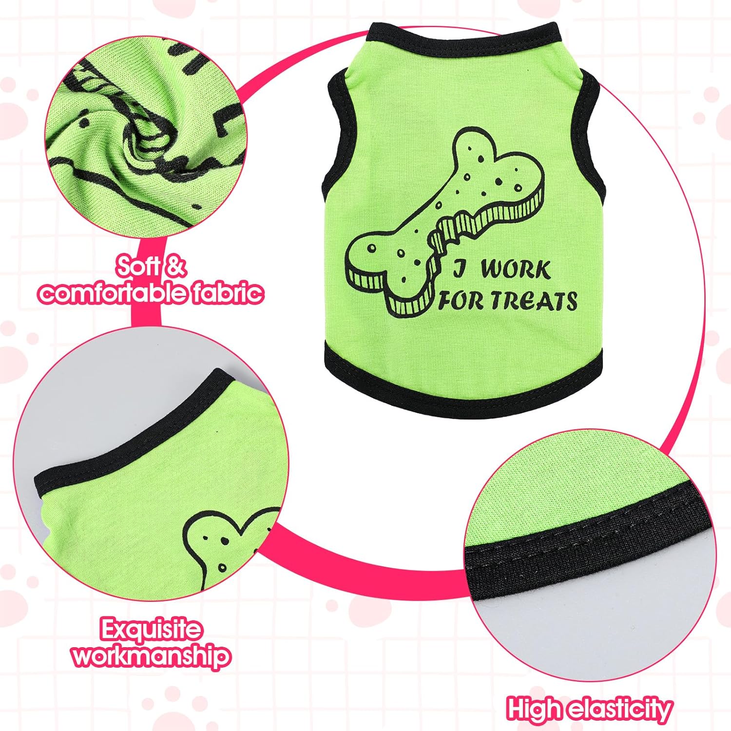 Quality ServiceYour satisfaction is our greatest concernSpecificationProduct Name: Cute Dog Clothes for Small DogsColors: Black Yellow, Black Green, Black Grey, Black BlueMaterial: PolyesterWeight: 78gPackaging Dimensions: 26 x 18 x 1.8cmPackaging Method: BagPackage Contents4-Piece Dog Shirts for Small Dogs