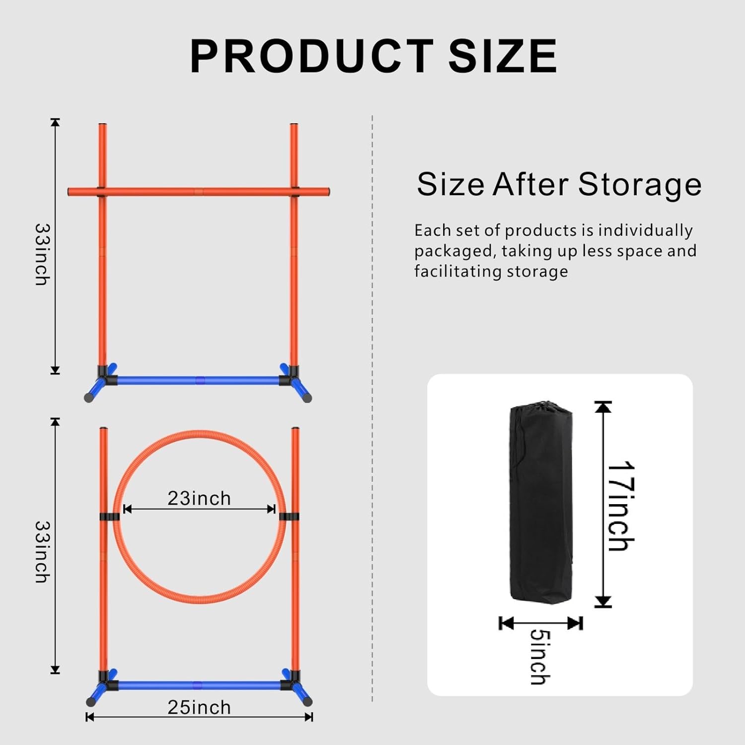 Easy to Assemble: The dog ability training equipment is easy to assemble and disassemble, and it can be stored in a small space when not in use, saving space and convenient for carrying Wide Application: The dog agility training equipment is suitable for indoor and outdoor use, such as dog parks, backyards, gardens, etc., and it can also be used for training dogs to jump, clip, and run High quality PVC material: which is odorless and non-toxic, promoting a safe and comfortable environment for your pet Adjustable Heights: The dog ability training equipment can be adjusted at will to meet the needs of different dogs, making it suitable for dogs of different sizes and ages Durable and Reliable: The dog ability training equipment is made of high quality materials, which is durable and reliable, and it can stand the wear and tear of dogs' playing, providing a long service life › See more product details