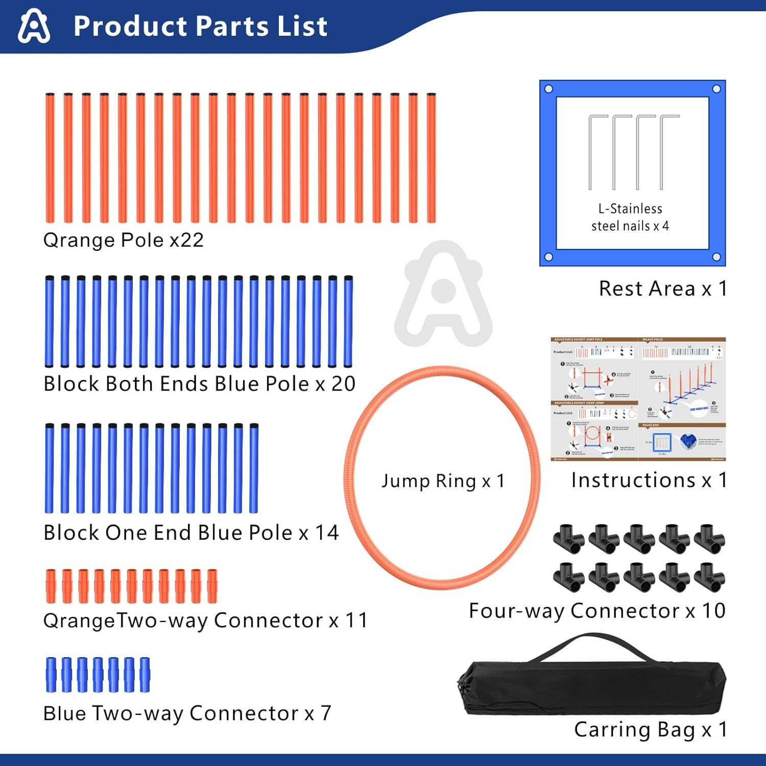 Easy to assemble: The agility training equipment is easy to set up and take down, making it convenient for use at home or in the park. It is also lightweight and portable, allowing you to take it with you wherever you go.Dog Hoop, Dog Jump, Weave Poles and Pause Box Height adjustable: Dog Agility Course Backyard Set can be moved up and down with a clamp, and you can adjust the appropriate height according to the size of the dog. New base design: Dog Jumps,Dog Obstacle Course,Suitable for more venues, the bottom pole of this dog agility kit can be applied to almost any surface, including grass, beaches, cement, wooden floors, etc., and can easily move position and distance. Convenient to carry: Dog Obstacle Course Backyard,Perfect for bringing equipment to parks, outings, or backyards. All different components can be placed together for easy storage. Made of PVC material: Dog Jumping Hurdles,sturdy and durable, PVC has high hardness and strength, as well as good wear resistance, corrosion resistance, and temperature resistance. › See more product details