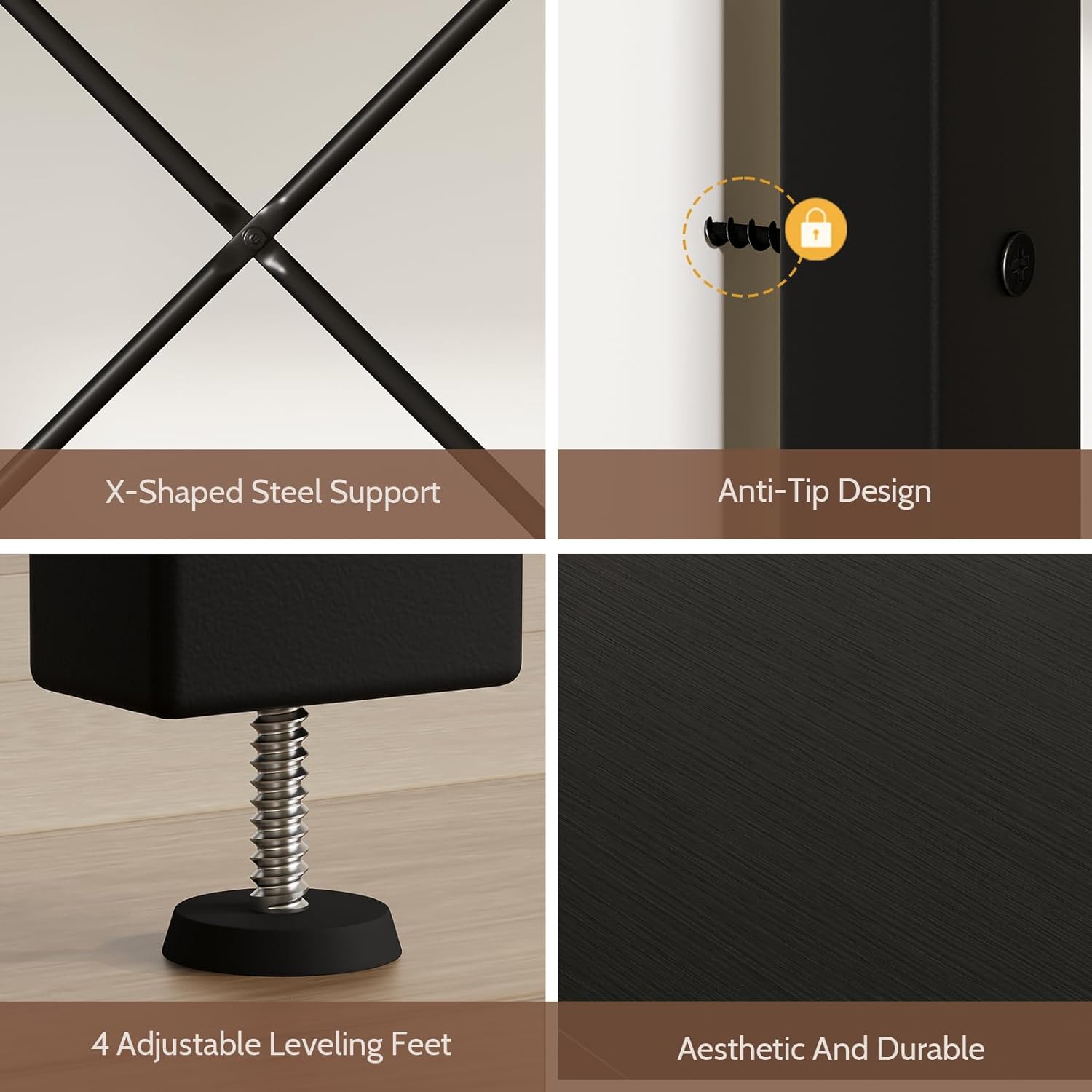 About this item Rock-Solid & Waterproof for Your 40-50 Gallon Aquarium: Built to confidently hold your 40-50 gallon tank stand! The high-density, waterproof MDF top features embossed texture, that resists scratches and spills. No more worrying about wobbles or water damage – this fish tank stand is engineered for peace of mind and long-term durability. Your All-in-One Aquarium Command Center: Stay organized with 3 adjustable shelves! Perfectly position them for canister filters, fish food, or even a small quarantine tank. Plus, enjoy the built-in 4-in-1 charging dock for all your gear and a handy drawer for hiding clutter. This isn't just a fish stand; it's your complete management system. Unshakable Stability with X-Brace Fortress Design: We don't cut corners on stability. Crafted from robust metal and engineered wood, this aquarium stand features a heavy-duty X-shaped steel frame at its core. This isn't just a tank stand; it's a fortress designed to eliminate sway and support massive weight, day in and day out. Precision Leveling & Pro-Grade Safety: Uneven floors are no match for us! Four adjustable leveling feet ensure your aquarium with stand sits perfectly flat and stable. For ultimate security, it includes a wall-anchoring anti-tip kit, because the safety of your aquatic family is non-negotiable. The Last Aquarium Stand You'll Ever Need: This is the final piece your setup deserves. It combines brute strength, smart storage, and a sleek, textured finish into one professional-grade aquarium stand. Stop compromising. Get the reliable foundation that looks great and works even better. › See more product details