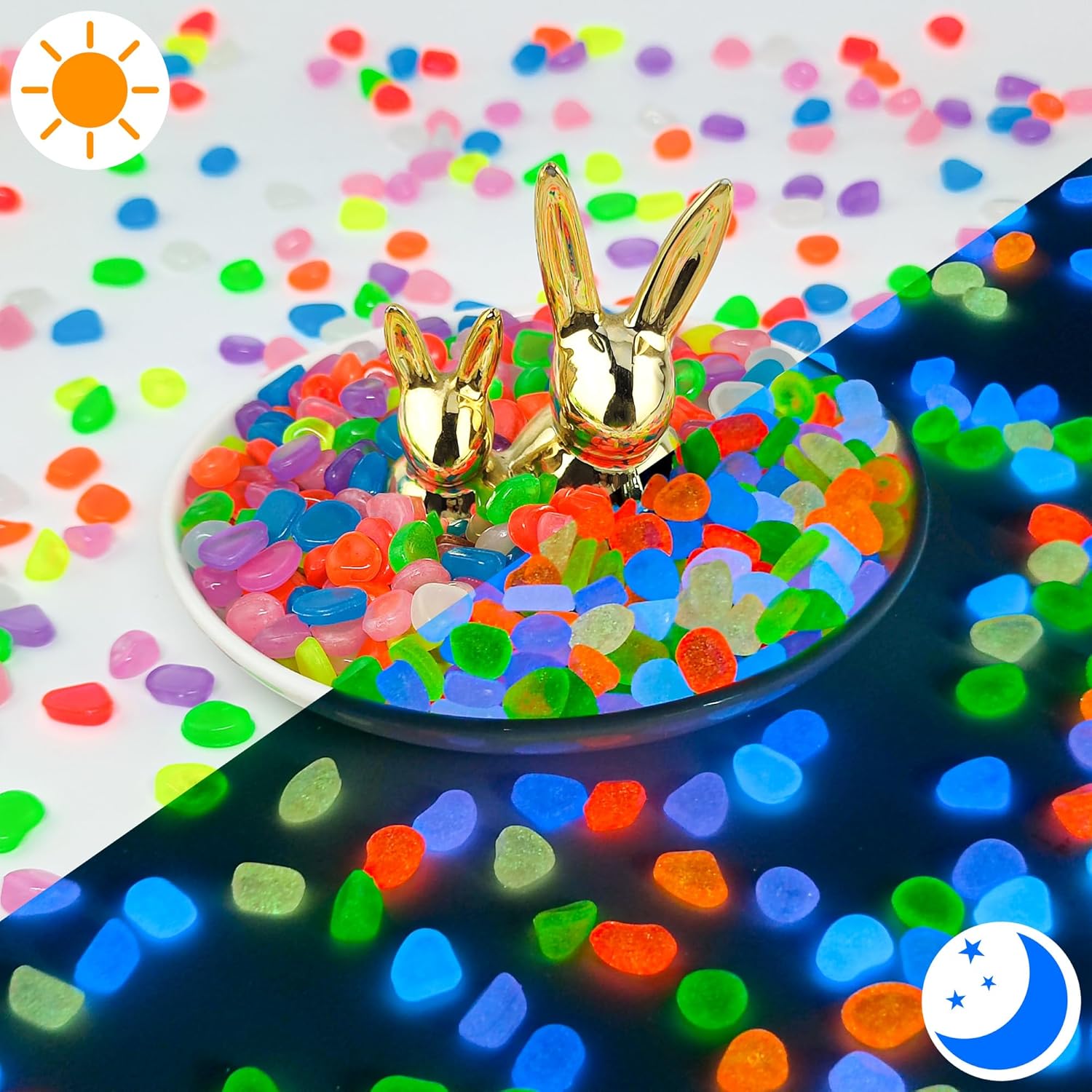 Decorative Aquarium & Fish Tank Rocks – These glowing pebbles add a magical underwater ambiance to betta tanks, turtle enclosures, or kids’ fishtanks—ideal for Fish and aquatic decor. Glow Stones for Outdoor Magic – These glow in the dark rocks absorb sunlight during the day and emit a soft glow at night, perfect for illuminating garden pathways, lawns, driveways, or patio landscapes. Enhance Flower Beds, Rock Gardens & Water Features – Use as glowing border stones, filler around fountains, or accent decoration in Zen gardens. Creates magical curb appeal and boosts property aesthetics after dark. Versatile Decor for Landscaping & Home – Use as glowing garden stones, stepping stone fillers, rock gardens, or decorative gravel. Line your garden paths, steps, or driveway edges with these durable luminous stones to improve nighttime visibility and add elegant landscape lighting.Also great for terrariums, vases, and Halloween displays. Versatile Decor for Landscaping & Home – Use as glowing garden stones, stepping stone fillers, rock gardens, or decorative gravel. Line your garden paths, steps, or driveway edges with these durable luminous stones to improve nighttime visibility and add elegant landscape lighting.Also great for terrariums, vases, and Halloween displays. › See more product details