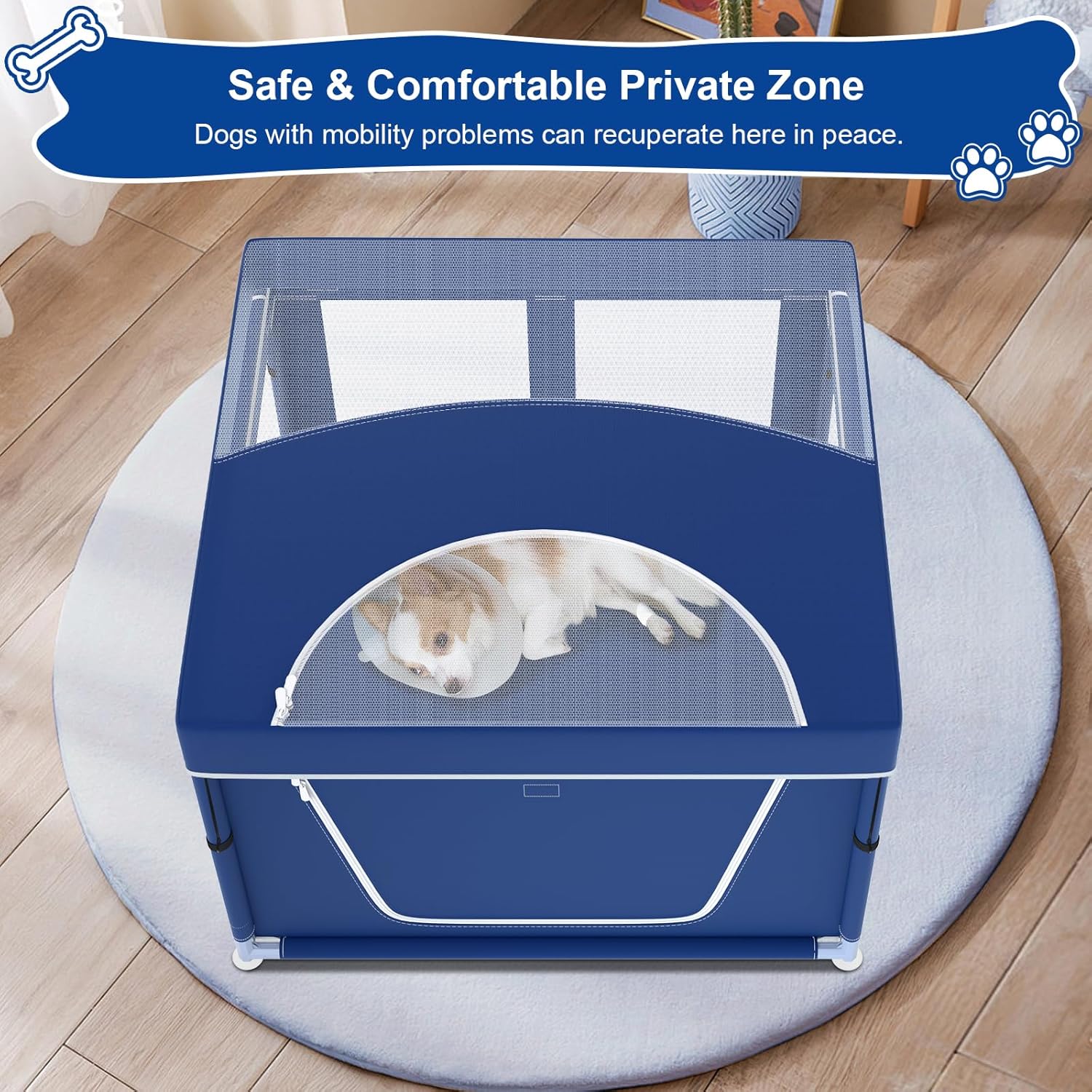 About this item : Considering the physiological needs of different dogs, the dog playpen provides a spacious and safe area for your pet. It can provide a quiet and private environment for pregnant dogs to get the gentlest guarding before and after giving birth. For dogs with limited mobility or senior dogs, a dog fence is an even more thoughtful assistant. The playpen can limit their range of motion, reducing the physical strain of over-activity, while ensuring they don't venture into potentially risky areas. They can recuperate in a comfortable environment and enjoy the serenity of their golden years. : the active and sometimes destructive little puppy now has a spacious and exclusive space. It can explore and play without worry, while you can supervise and train it with peace of mind, guiding it to grow into a well-behaved dog. Added top cover prevents mischievous pets from escaping. : The dog crate is designed with sturdy steel tubing, Anti-scratching fabric and mesh with unique reinforced sewing process that provides excellent stability and resistance to deformation to ensure more durable use. The dog fence is made of safe and environmentally friendly materials, not only easy to clean and maintain but unlike traditional iron fences, you don't have to worry about your dog swallowing iron shavings or getting injured. : The side walls of the playpen are made of visible and breathable mesh, providing a comfortable and breathable environment for your pet. See-through mesh allows you to track of your pet's movements,keep them comfortable and safe. Top zipper design allows you to interact with your pet at any time. The cover is a removable design, putting the cover on ensures your pet's safety and prevents escape, removing the cover allows plenty of sunlight and fresh air to flow through. :The dog fence is made of 600D high density oxford fabric and anti-scratch mesh design, BPA free, can easily withstand scratching and chewing.with 4 TPR suction cup bases are well strengthen the stability. The playpen's cover is made of waterproof oxford fabric that can be easily cleaned with water. : The proportions of the dog playpen are carefully designed according to the size of the dog,this playpen is suitable for small dogs. Before purchasing a playpen, please measure the dimensions of your pet's body, such as standing height and length. Choose a dog playpen that matches the size to ensure a perfect fit and provide your pet with an ideal and comfortable living space. › See more product details