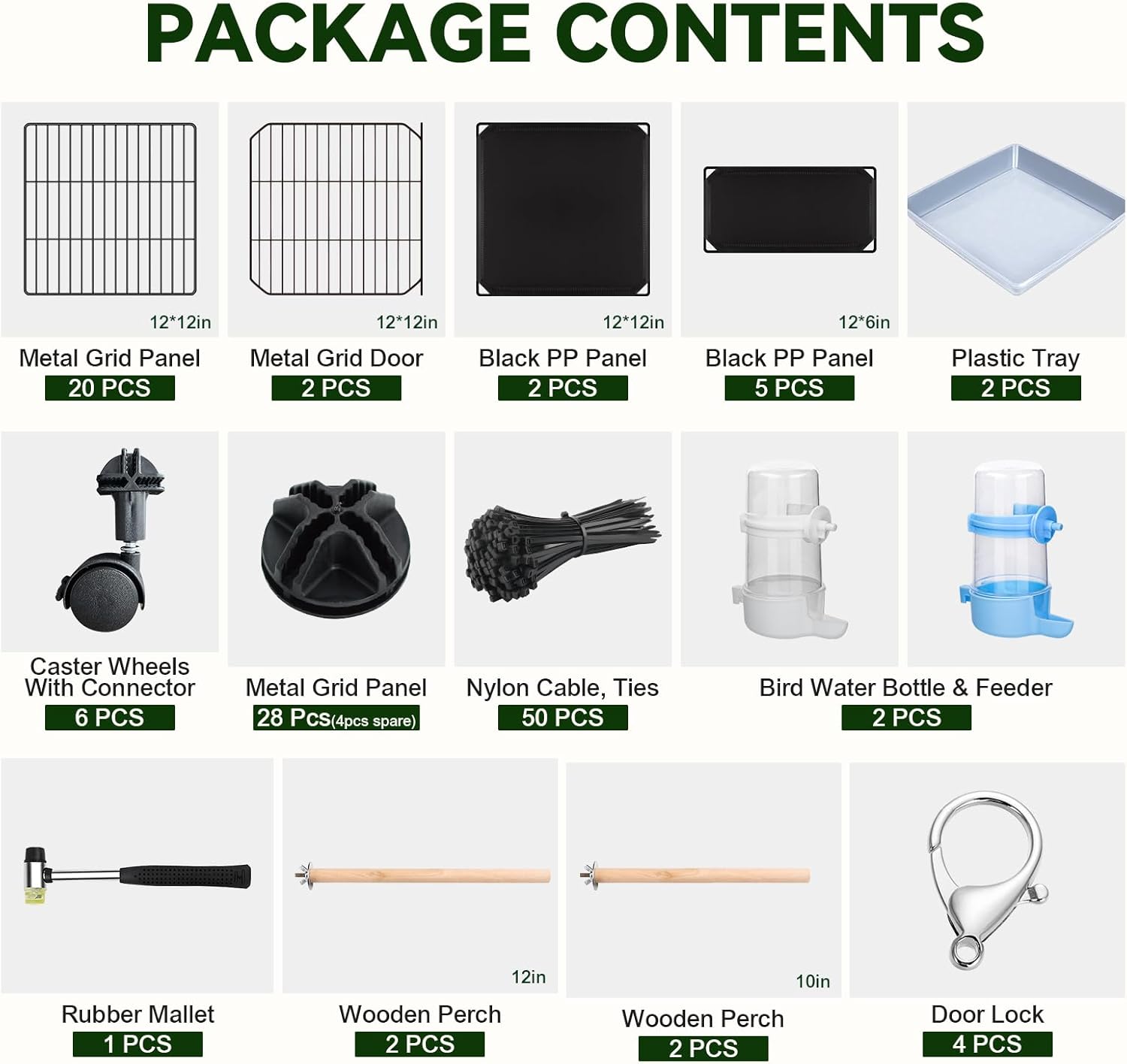 - Included Components: caster wheels with connector,bird water bottle,rubber mallet,wooden perch