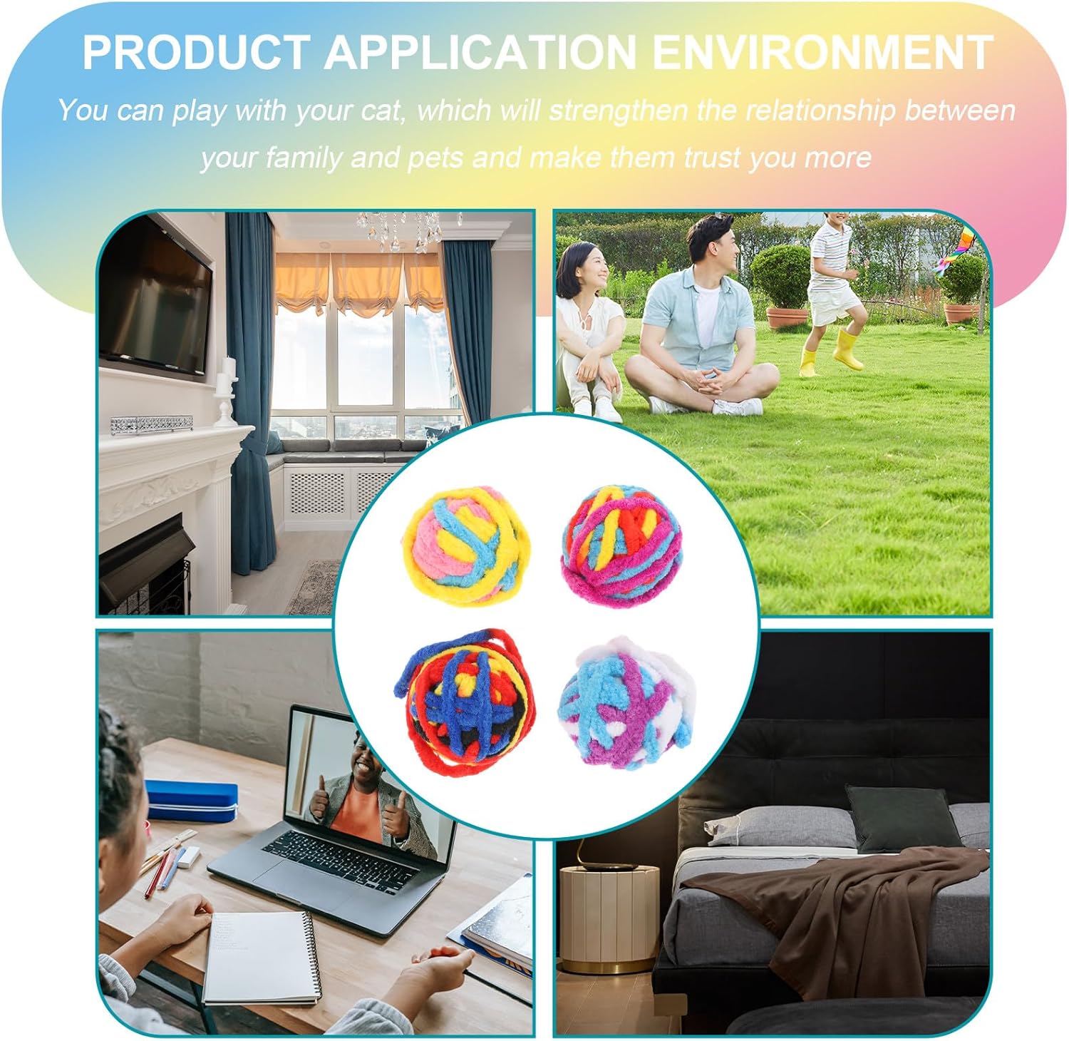 Package Include 4 x Cat Balls Features - Size: About 5.00X5.00X5.00cm/1.97X1.97X1.97inch -Product Info:Cat ball - Material: Polyester - Stimulating cats' hunting instinct, your pet will love chasing, catching and rolling with our ball! Cat Chasing Balls - You can play this with your cat, which will the relationship between you and your pet and make them trust you more soft cat balls. - Your cat will get an opportunity to work out by chasing this ball. It is very useful in daily life cat for indoor cats. - A for your pet cat, keep your cat’s energy levels balanced and keep them busy cat . - ColorAssorted Color - This cat ball for pets stimulates cats’ senses and will make them chase and play with their ball kitten .Goods Descriptioncat chasing Do you love your cat? Do you want to send a to your lovely kitten? Well, then just grab this ball .cat pet Also, can make your pet do some exercise and the unpleasant mood. for cats indoor It can keep your cat so busy that they won't have time to scratch and damage your furniture