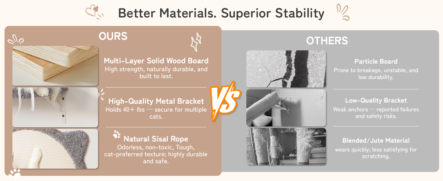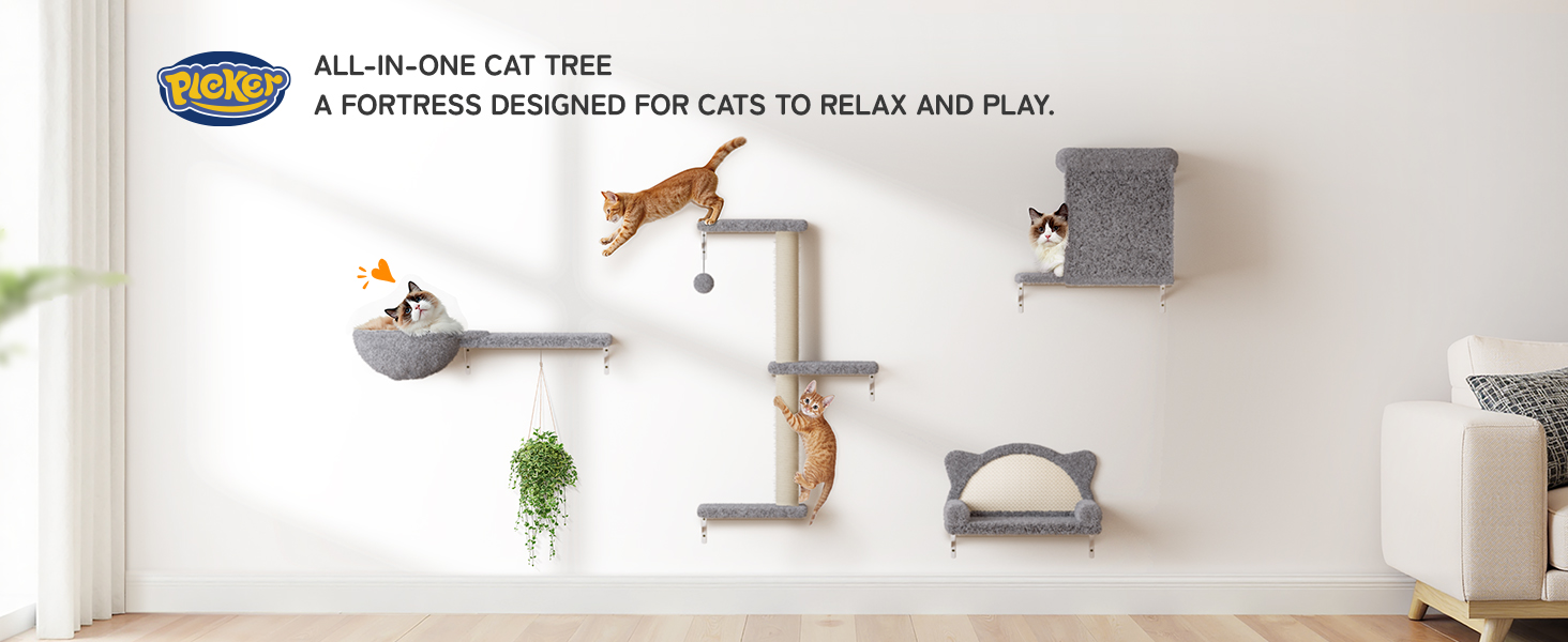 About this item Sturdy & Cat-Approved Design:Crafted with solid wood multi-layer boards and soft peach velvet, Pleker’s wall mounted cat shelves ensure exceptional durability and weight capacity. Each cat shelf is rigorously tested for stability, offering a safe haven for climbing, napping, and scratching—perfect for energetic cats who love cat wall climbing! Extra-Wide Wall Perches for Playful Paws: The expanded cat wall shelves design gives your feline ample room to sprawl, leap, or curl up. Combined with a cozy double-decker cubby and swing basket, this cat furniture set transforms vertical spaces into a whisker-approved jungle gym where cats can nap, lounge, and survey their kingdom. Effortless Installation for Pet Parents: Cat wall furniture set is designed for standard 16" drywall, the kit includes pre-drilled brackets and a bonus drill bit to simplify setup. No guessing games—secure mounting on wooden studs ensures wobble-free adventures. Even first-time DIYers can create a purr-fect Modern Cat Climbing Wall in minutes! All-in-One Cat Adventure Zone: From cat scratching posts (sisal-covered, furniture-saving!) to a cloud-like velvet sofa perch, Pleker’s set covers every feline whim. Mix and match over 5 layouts—hang cat shelves for wall vertically for climbing challenges or arrange horizontally for chill-out zones. Endless fun tailored to your space! Space-Saving & Style-Enhancing: Maximize unused wall areas! This vertical playground frees up floor space while doubling as chic decor. The neutral tones and sleek curves blend with modern interiors, proving that cat furniture can be both functional and Instagram-worthy. › See more product details