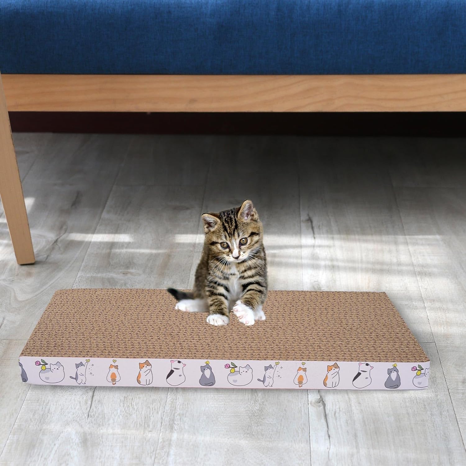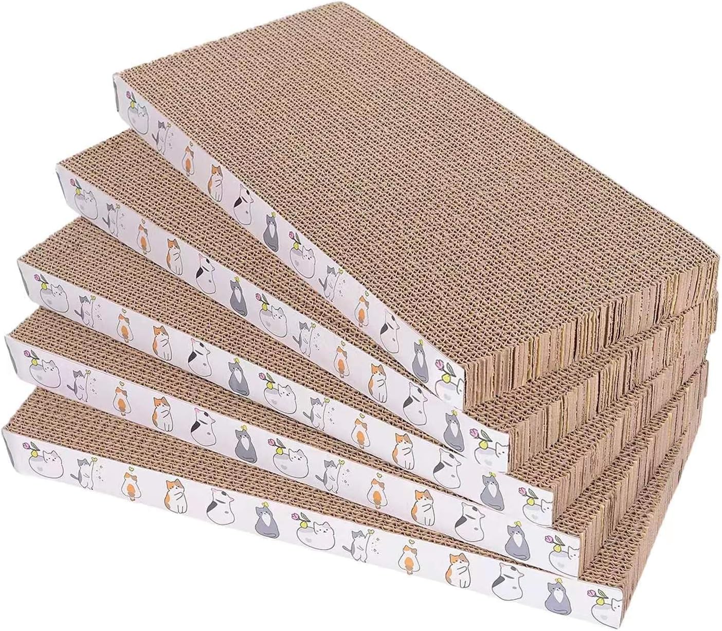 About this item Single Size:16.73 x 7.87 x 0.91inch(42.5 x 20 x 2.3cm) Material:Made of high grade recyclable corrugated paper,Safe and reliable. Double-sided use:Cats can use our cat scratch pad front or back to Grind claws,Longer service life. Better value:5 pieces cat scratch board are double-sided use Product features:Use catnip to grind claws safely.Our products can protect your sofa, table and bed from cat claws › See more product details
