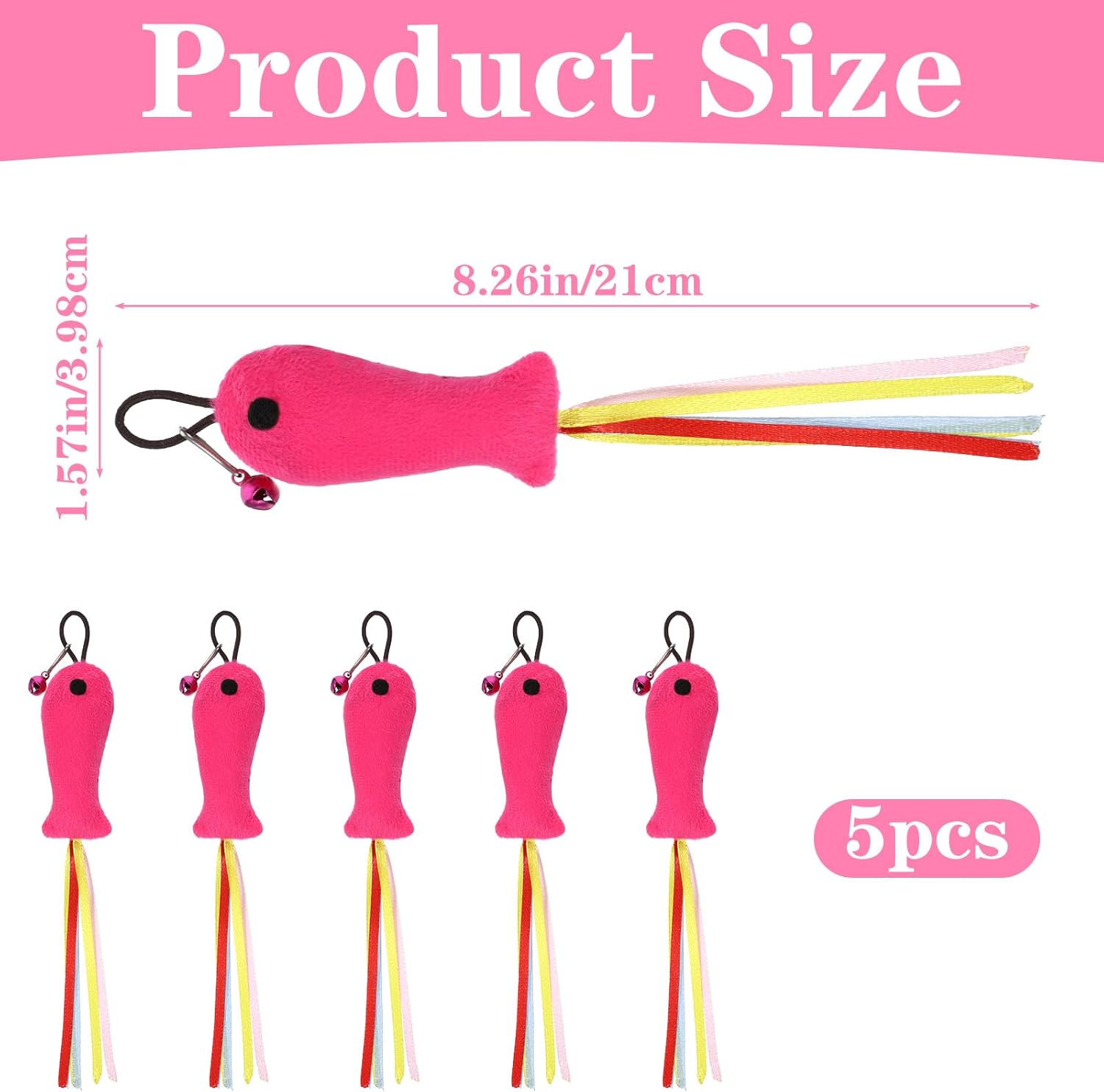 specificationProduct Name: Rose Red Fish-Shaped Catnip ToyColor: Rose RedMaterial: PolyesterWeight: 17gProduct Size: 21×4cmPackage List: 5 Piece Fish-Shaped Catnip Plush Toys