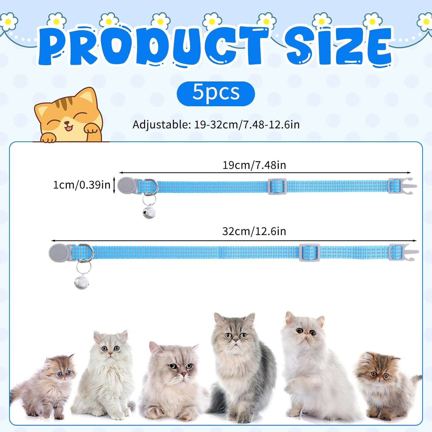 - Directions: 5pcs Reflective Removable Cat Collar with Bell