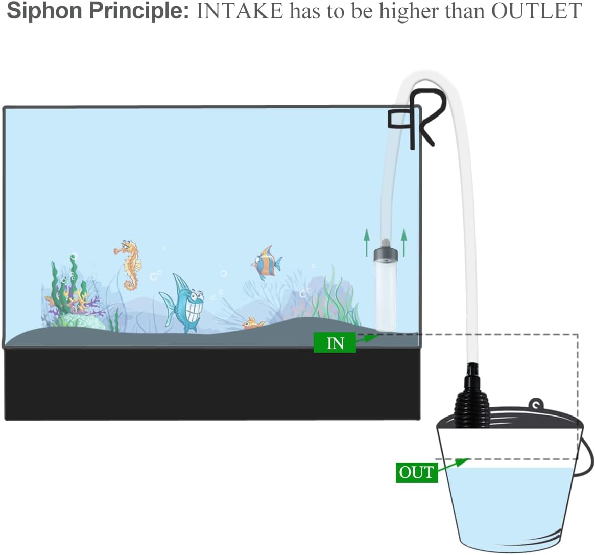 FUNCTION --- Easy to control, convenient to siphon fish faeces, impurities, turbid water out of fish tank. 5 Feet HOSE --- Made from clear & elastic plastic. Makes it more durable and anti-kinking. Harmless to fishes & No peculiar smell. GRAVEL TUBE --- Sinkable, with a detachable filter screen inside. Will not disturb fish or decor when it's working. SIPHON BALL --- All you need to do is to pinch it several times, water will flow out automatically. Without striking a blowing. WARRANTY --- For 3 months after the date of purchase, we take care of all quality-related issues with a FREE replacement or refund. If you have any questions, do not hesitate to contact our professional after-sale service. › See more product details