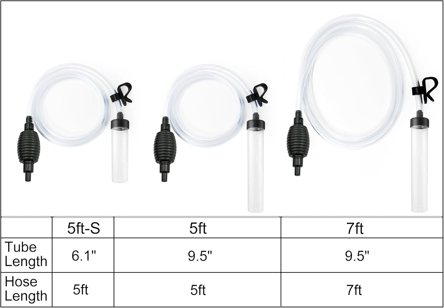 - Included Components: 5ft PC hose, Hard gravel tube, Hose clip, Siphon ball, User manual