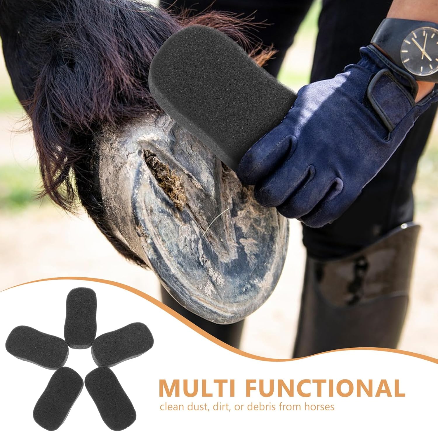 Package List 5 x Sponges Features -Product Info:Beauty sponge washing machine -Size:12.50X6.50X3.50cm/4.91X2.55X1.38in -Material:Sponge -Color:Black -Lightweight and portable, creative design, Horse Grooming Sponge is very easy for you to operate sponge for bathing horses. -This horse hair cleaning sponge can help remove mud, sweat and dirt from your horse’s hair horse wash sponge. -Made of sponge materials, durable and safe for a long time use, won't irritate your horse. -Help your horse keep clean, healthy and beautiful, provide an enjoyable grooming experience for both you and your horse sponge horse. -Easy to clean and help to remove caked dirt, loose or loose hair from the horse cleaning kit .Goods Descriptionhorse cleaning sponges The Horse Grooming Brush is made of sponge material for durable to use.horse sponge scrubber Increase , and the health of horses.sponge for bathing horses Suitable for cow, horse or other large animals use.horse accessories for real horse scrubber Grooming a horse is not only a necessity, but also an enjoyable activity for you and your horse.horse tack cleaning sponges Grooming relaxes you and your horse and is a great opportunity to check for injuries and irritation