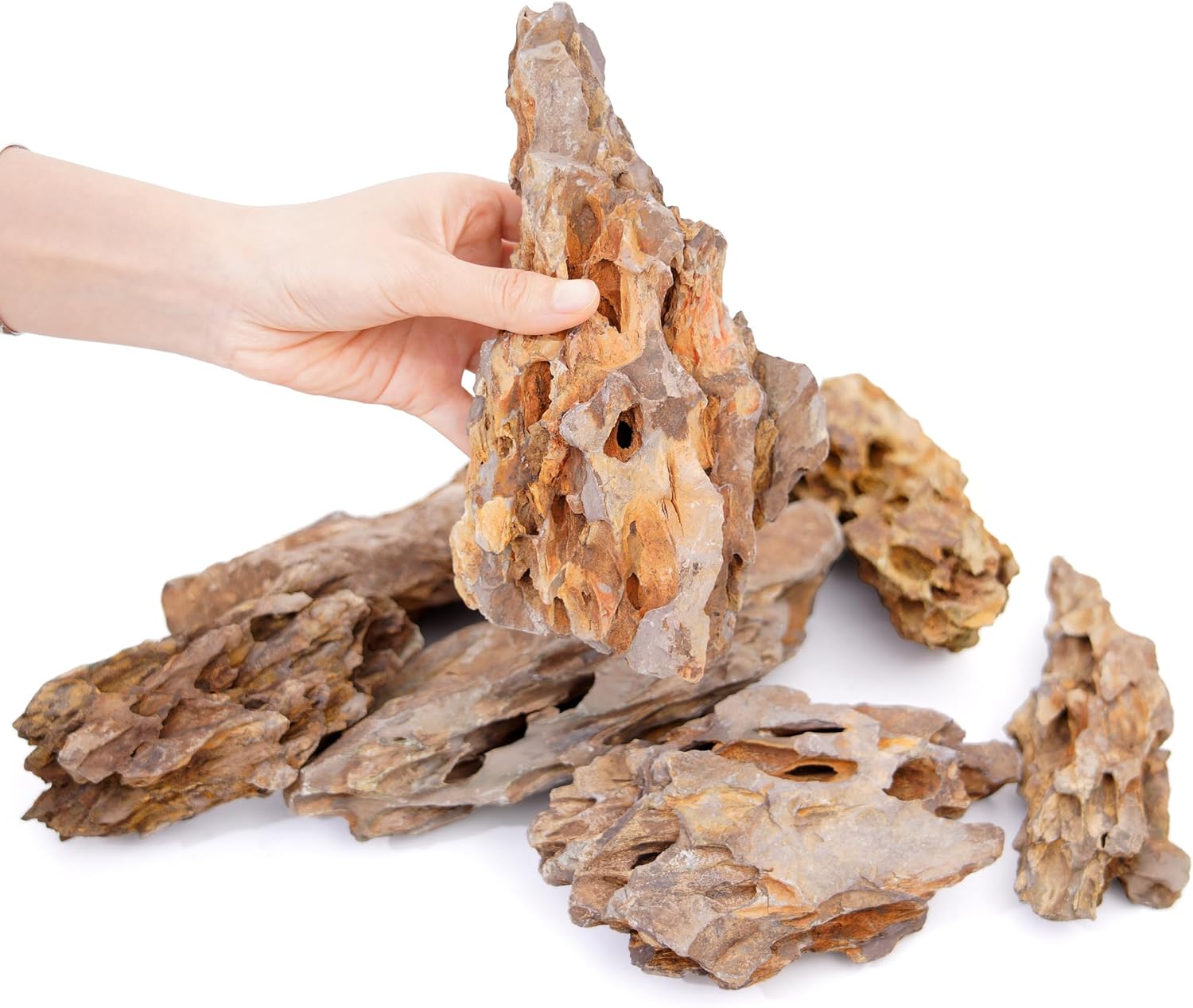 UNIQUE NATURAL TEXTURE & COLOR: Each natural dragon stone features a distinctive scale-like texture and earthy color, adding depth and visual interest to your aquarium aquascaping. Its porous structure and crevices are perfect for crafting realistic, natural-looking underwater landscapes. You can explore more possibilities in aquascape designs with our aquarium rocks. NATURAL MATERIALS & SAFETY ASSURANCE: The dragon rock is inert, meaning it will not alter water chemistry or pH levels, making it safe for fish, shrimp, aquatic plants, and sensitive planted aquariums. The aquarium rock can provide a safe natural habitat for aquatic life and promote the ecological balance of the fish tank. EASY TO USE & MAINTAIN: Our natural aquarium dragon stones are easy to clean. Just rinse before use, and you can create unique landscape effects. Their durability ensures long-term use without losing visual appeal. The stones offer hiding spots for fish and anchor points for plants, while the porous structure promotes beneficial bacteria growth, supporting effective biological filtration. VERSATILE USE: The fish tank rocks are ideal for crafting natural aquascapes, including mountain ranges, caves, and hillside terrains. The dragonstone's unique textures and earthy tones beautifully complement aquatic plants and colorful fish, making them a favorite among aquascaping enthusiasts. RELIABLE AFTER-SALES SUPPORT: We are committed to providing exceptional customer service. If you have any questions or concerns, our support team is always ready to assist you and ensure a smooth experience. › See more product details
