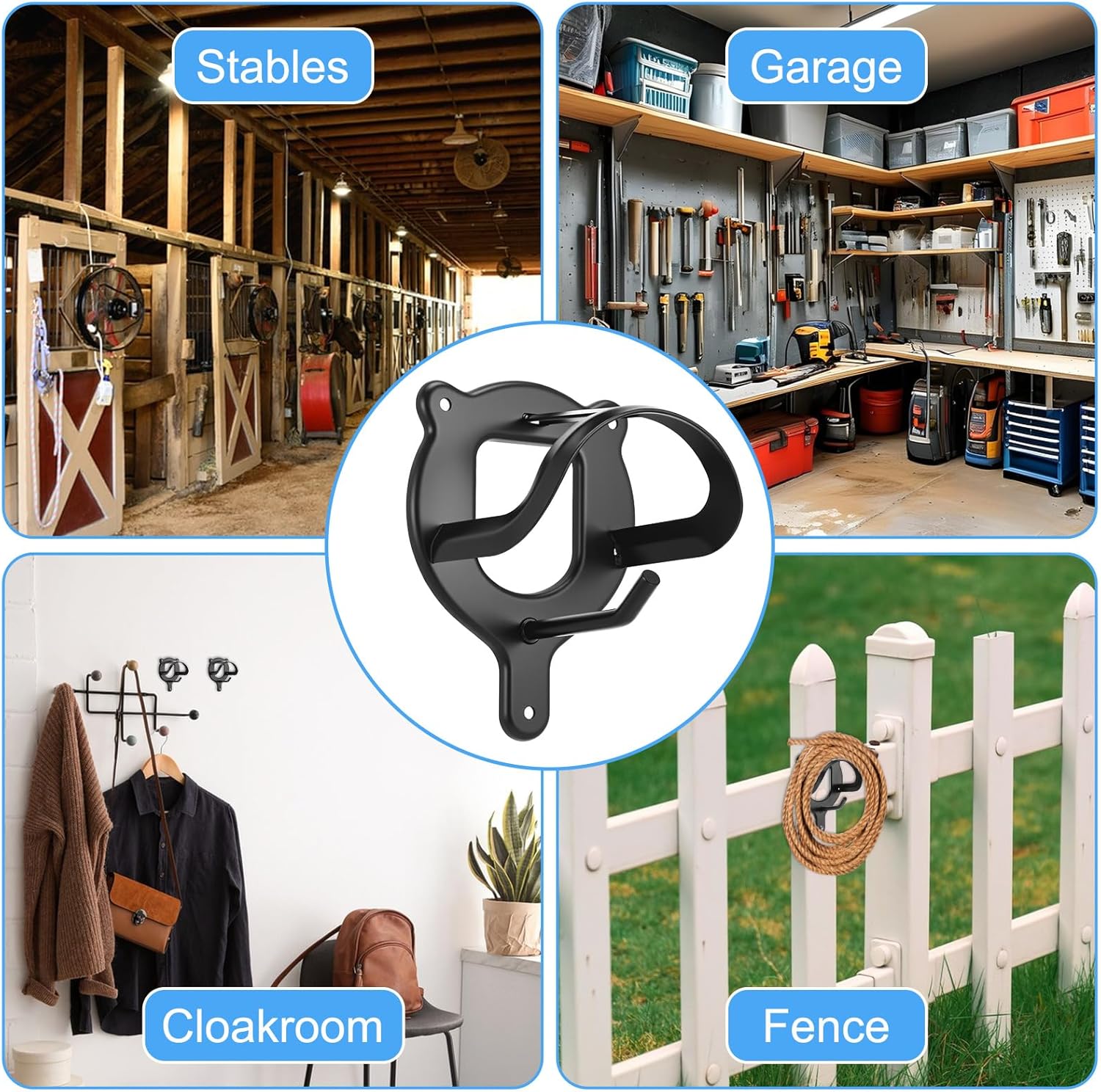 Welcome to our store!Features:This set of six black iron bridle racks offers a durable and organized storage solution for horse tack. Crafted from sturdy, corrosion-resistant iron, each wall-mounted unit features multiple tubes designed to hold bridles, halters, and other equipment securely. The straightforward installation with included screws allows for reliable mounting in tack rooms, barns, or stable aisles. The compact design helps maximize wall space while keeping essential gear neatly arranged and easily accessible. The classic black finish provides a neutral appearance that blends with various barn decors. This practical set assists in maintaining an orderly tack area, supporting efficient equipment management for equestrian facilities.Specifications:Material: IronColor: BlackProduct Size: 5 x 3.8 x 3 InchesPackage Includes:6 Counts x Horse Bridle Rack with Tubes and ScrewNotes:Manual measurement, please allow slight errors on size.The color may exist a slight difference due to different screen displays.