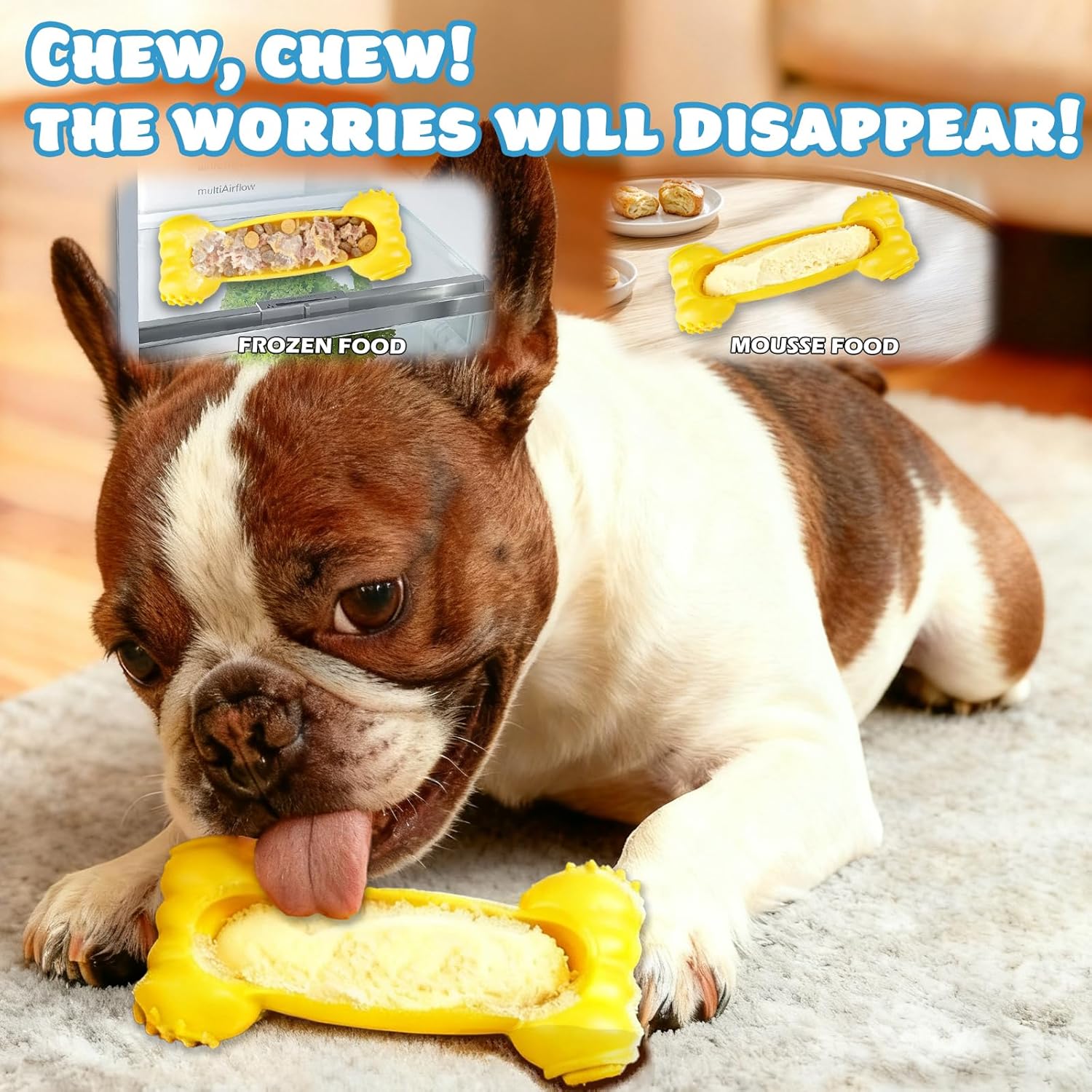 About this item 【Enrichment & Interactive 6-Piece Set】Meet the Cimolea dog enrichment toy kit—packed with 2 lick mats, 1 licking ball, 1 ice tray, 1 bone-shaped bowl, and a spatula! It keeps your pup entertained 40% longer than a single toy—total game-changer for crate training, vet trips, or thunderstorm jitters. The strong suction cups stick tight to tiles or crates, and the vet-approved textured surfaces let them satisfy their natural licking instinct. Perfect for mealtime, anxiety relief, or just keeping them busy—works in so many scenarios! 【Slow Feeding & Dental Health Boost】This set’s deep-grooved lick mat and bone-shaped bowl slow down mealtime by 60+ minutes—no more gobbling that leads to bloat! The silicone ridges gently scrape plaque off their teeth as they lick, so it’s like a little dental clean while they play. And the lick bowl’s tilted design? Total win for pugs, French bulldogs, and any pup that tends to gulp too fast. It’s all about healthier eating habits and happier teeth—easy peasy! 【Frozen Treats & Mental Stimulation】Love that these are freezer-safe! Fill the mats and ball with peanut butter or bone broth, pop ’em in the freezer, and you’ve got a 2-hour cooling treat for summer—your pup will go crazy for it. The licking ball has a hollow center to hide kibble, so they have to problem-solve to get the goods (great for mental exercise!). Plus, licking releases feel-good endorphins—cuts down destructive behavior by 67% when they’re home alone. Perfect for keeping them mentally sharp and cool during hot days or stressful moments. 【Food-Safe Silicone & Easy to Clean】Made with non-toxic silicone—way safer than plastic chew toys! The surface is non-porous, so it doesn’t hold odors (huge plus!). Cleanup is a breeze: toss ’em in the dishwasher, or hand-wash in just 10 seconds. The included spatula helps spread pastes evenly—no waste, just mess-free fun. The durable, hygienic material holds up to regular use, so you can feel good about letting your pup play again and again. 【Gift-Ready with Lifetime Support】Comes in eco-friendly packaging with a training guide—ideal gift for new pet parents (they’ll thank you!). Backed by a 90-day warranty: if anything wears out, we’ll send a free replacement—paws-itively guaranteed fun! Pro tip: Freeze Greek yogurt with blueberries in the ice tray for a refreshing puppy smoothie—your fur baby will beg for more! This complete enrichment set delivers lasting value with clever design and awesome customer support. › See more product details