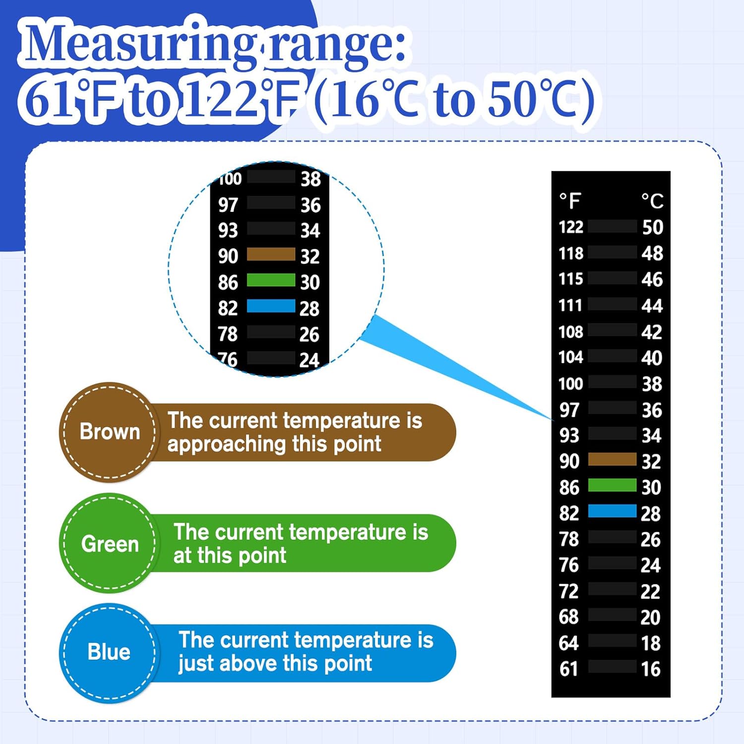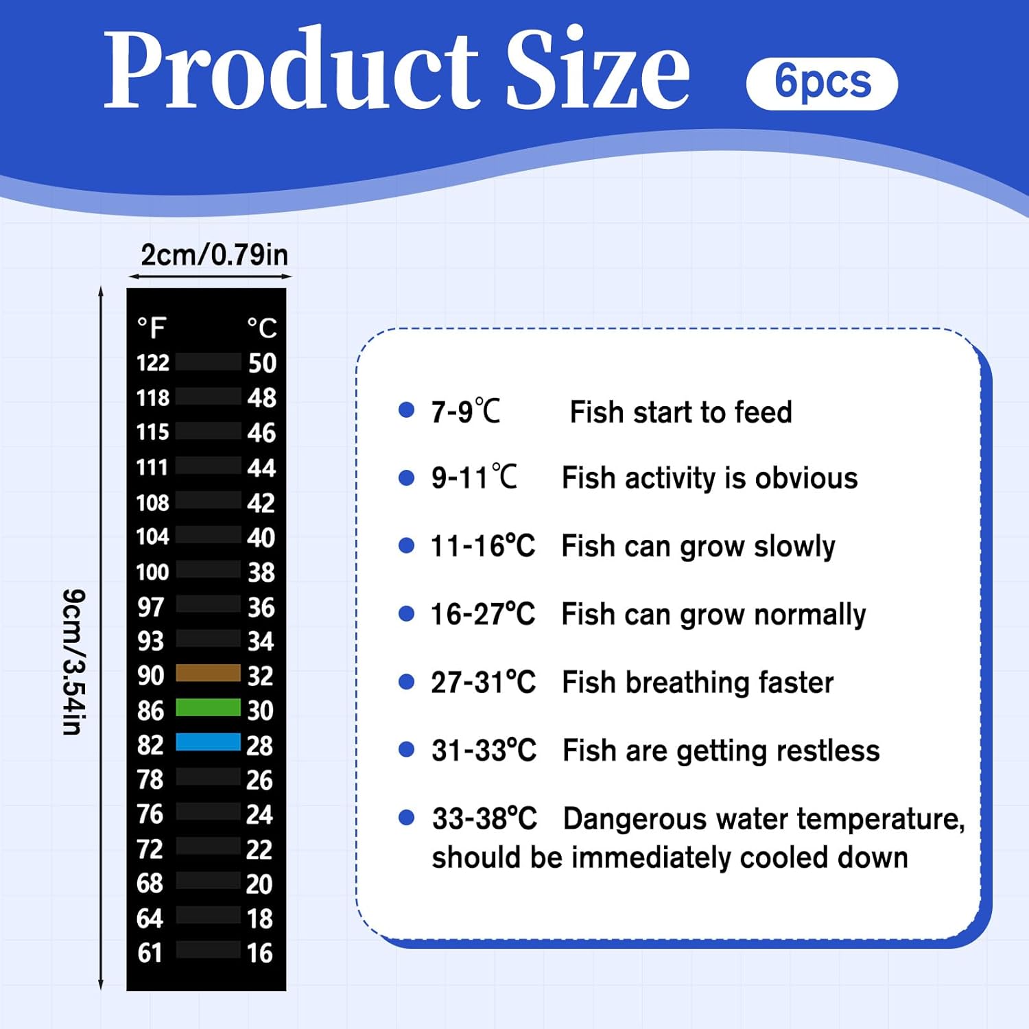 DESCRIPTION:Name: Fish Tank Thermometer Quantity: 6 PcsMaterial: Thermal PaperWeight: 5gPackaging size: 12*8*1.9cmPACKING LIST: 6 Pcs aquarium thermometer