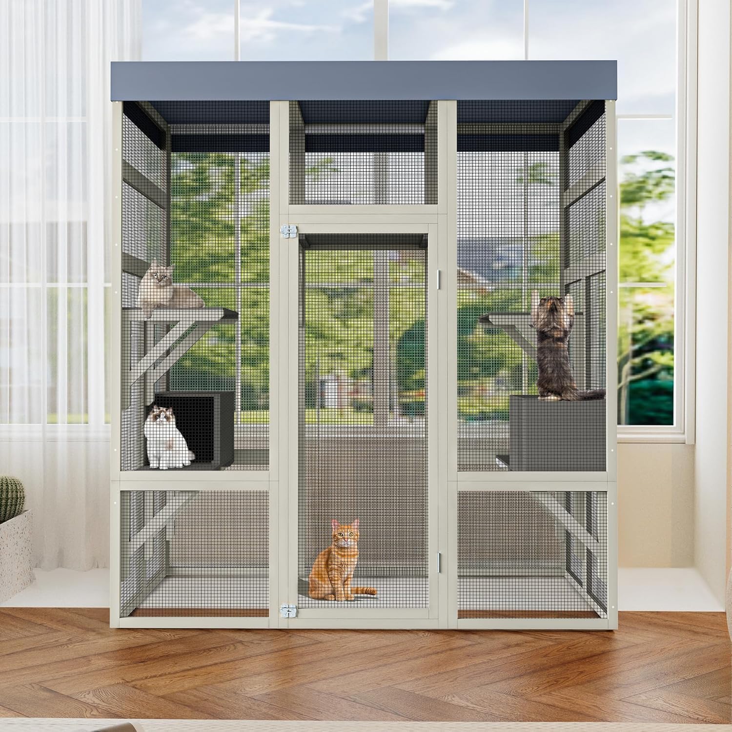 Give your indoor cat the fresh air experience they crave without compromising their safety. This spacious outdoor enclosure creates a secure playground where your feline friend can climb, explore, and nap while being protected from the elements. The sturdy wooden frame and tightly-woven mesh create a durable environment where your pet can safely watch birds and enjoy the breeze.The weatherproof design stands up to sun and rain while maintaining excellent airflow through the mesh panels. Watch them nap peacefully on the platforms or engage in playful climbing—all within the security of this well-built structure. Setting up is straightforward with the included instructions, and the practical design makes routine cleaning and maintenance simple. Whether you're growing herbs in pots on the shelves or simply enjoying watching your cat explore, this habitat brings peace of mind while giving your pet the outdoor stimulation they need. The roomy interior provides plenty of space for multiple cats to enjoy together, making it perfect for households with more than one feline companion.