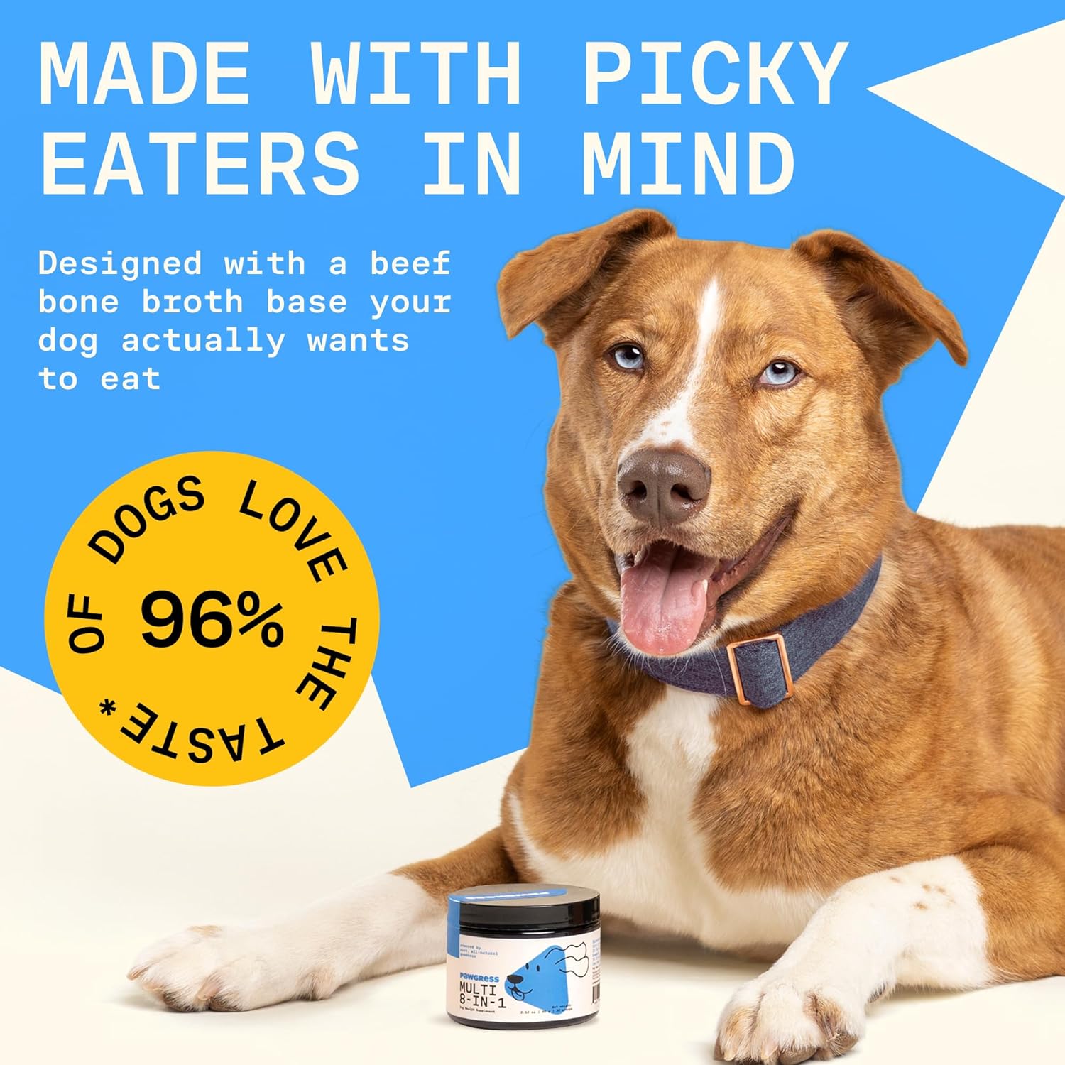 About this item TOTAL 8-IN-1 SUPPORT: A powerhouse multivitamin for dogs that supports energy & performance, skin & coat, hips & joints, immune system, brain & cognition, heart health, liver & kidneys, and digestion. Designed for all breeds, sizes, and ages—so your dog can thrive every day. 3X MORE POWERFUL FOR LONGEVITY: Developed using the latest in canine nutrition science and formulated at therapeutic levels, this advanced multivitamin delivers up to 3x more active nutrients than standard formulas. Designed to support cellular health, immunity, and organ function for a longer, healthier life. 100% NATURAL, ONLY ACTIVE INGREDIENTS: Your dog deserves the best. That’s why we use only premium, all-natural ingredients—like colostrum, Pasture-raised, freeze-dried New Zealand beef liver, spirulina, camu camu, astragalus, and functional mushrooms. No fillers, no artificial flavors, no preservatives—just functional ingredients chosen to support your dog’s immunity truly. CREATED BY DOG NUTRITIONIST: Pawgress Multi 8 in 1 was thoughtfully developed by our co-creator Kayla Kowalski, a certified dog nutritionist on a mission to make dog multivitamins simple and effective. She teamed up with the best nutrition experts and holistic herbalists to craft a formula that blends proven ingredients with real-world results. LAB TESTED AND MANUFACTURED IN THE USA: Proudly made in the USA in a GMP-certified facility, our vitamins for dogs are rigorously tested for safety, purity, potency, and palatability. You can trust that every scoop meets the highest standards—because your dog is family. › See more product details