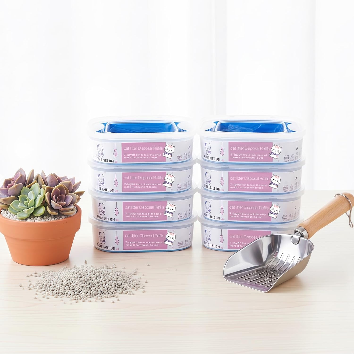 About this item Each 28 FT long refill features enhanced thickness and durability, Compatible with Your Standard, Plus,XL+ models. Save money while ensuring long-lasting performance for cat lovers. NOTE: Non-original cartridges The refill is made of 7-layer film to maximize thickness and durability, providing superior strength for long term odor control. The refill bags are easy to assemble, please follow the manual in the package. Easy to assemble, simply pull out a bit of film, push it through the center of the cartridge and tie a knot at the bottom. Then, open the lid and funnel of the pail, place the cartridge on top, and push the refill all the way. Simple installation can save you a lot of time. Package: 8 pack of refills Cartridge , 1 user manual are included. › See more product details