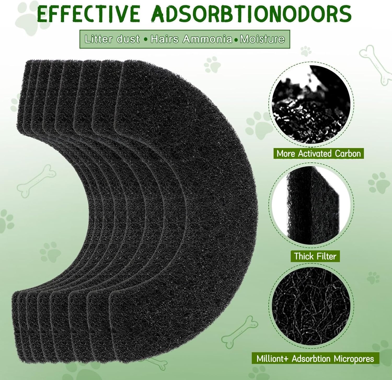 About this item Compatible Models: This activated carbon filter are specially custom-made for compatible with model 4 and for model 4 connect(you know what I'm talking about), you can trust; These activated carbon filter for auto cat litter box can help you reduce better odor and get fresher air Pet-Friendly Material: Our filter replacement for cat litter box adopts fiber activated carbon with millions of tiny pores, which increases high absorption and makes the filtration performance more powerful; What's more, this carbon pre filter is non-toxic and tasteless, environmentally friendly, and safe for pets Reduce Odors at Home: This cat litter box filters are aimed at controlling the odor of the litter drawer, reducing the impact of unpleasant water from pets on the air, neutralizing odors in the home and maximizing a fresh home atmosphere; Activated carbon charcoal pads trap urine and feces odors in their pores so your home smells clean and fresh Easy to Replace: Our pictures has nstallation tutorial; You just need to remove the old filter sponge and replace it with the new charcoal litter box filters to finish the installation, which only takes a few minutes without any additional tools and knowledge 8 Pcs for 8 mth: We offer 8 carbon filters fit for model 4 and can replace according to your cat's usage patterns; However, in order to best control the odor, it is recommended to replace it once a month, so that your litter box filter system will last about 8 months › See more product details