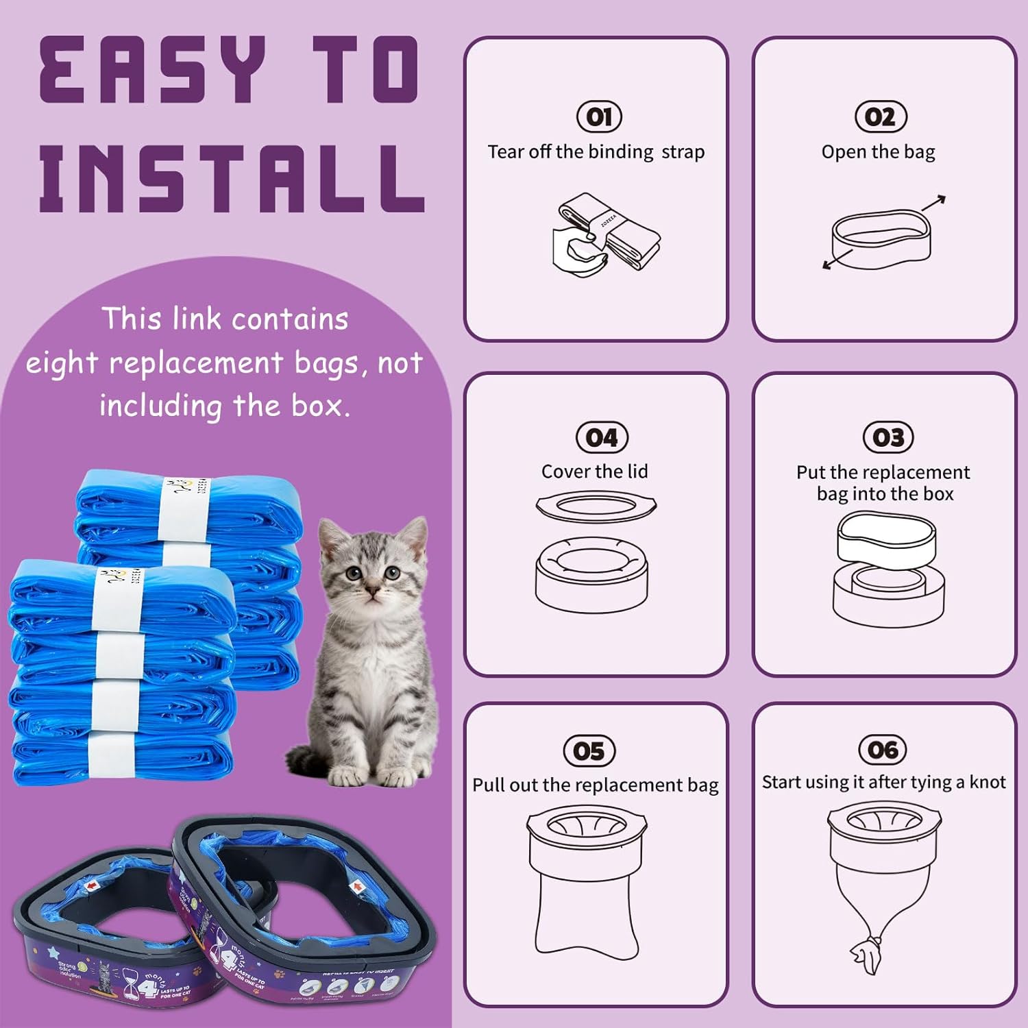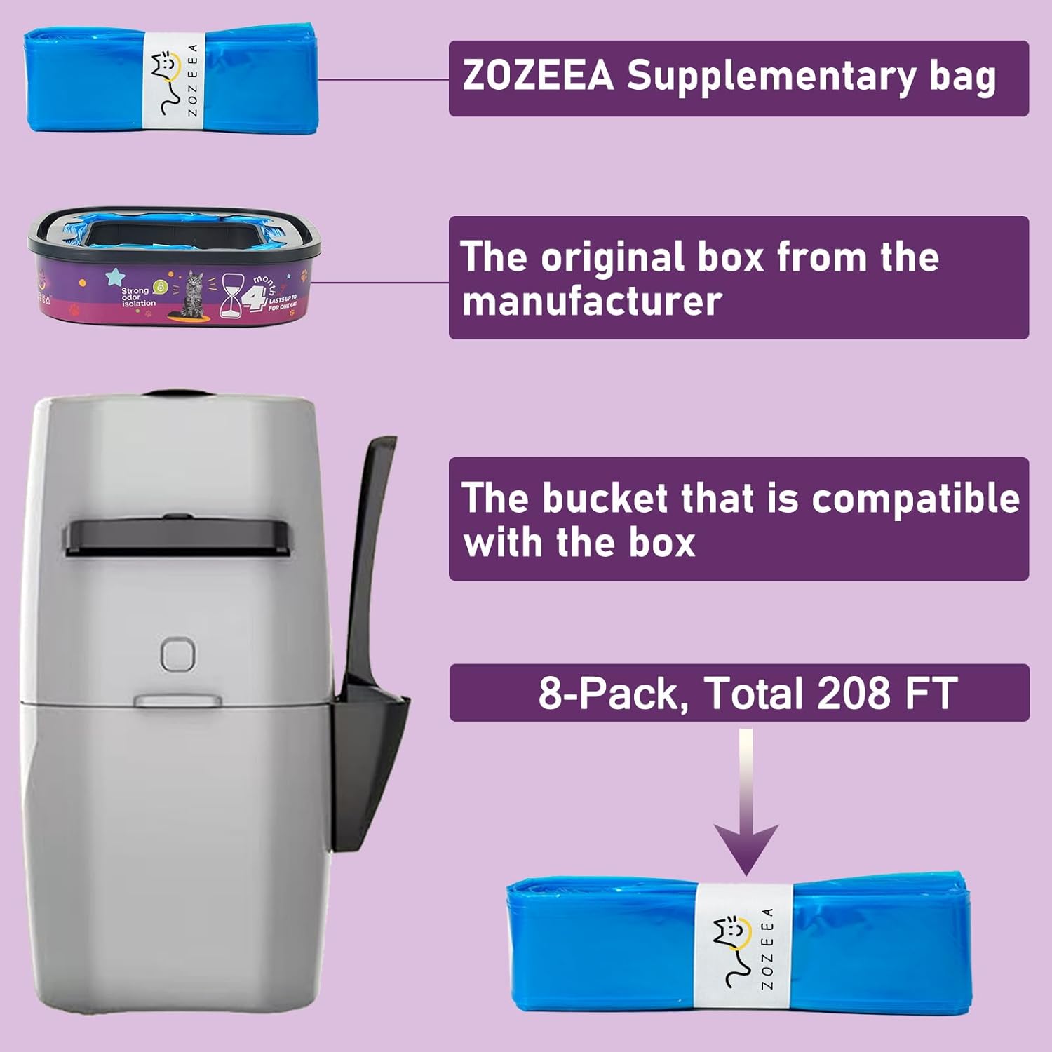 About this item 【32 Months Supply】The package comes with 8 pack of cat litter refill bags, 26.2 ft / 8 m long, extra 80% length than others. One refill bag lasts up to 16 weeks with one cat! Litter refills are less costly, space, and wasteful than others! is also very suitable for multi-cat families. 【Universal Fit For All Major Pails】 Experience perfect compatibility! These generic refill bags are expertly designed to seamlessly fit all your favorite litter pails, including the XL+/XL/Plus/Standard/Style/Pet Pail models. No more guessing games – just a guaranteed perfect fit. 【7-Layer OdorLock Technology】 Our refill bags feature a advanced multi-layer barrier that effectively traps and seals away stubborn litter odors at the source. Enjoy a consistently fresher home without any unpleasant smells, thanks to our powerful odor-blocking design. 【Rip-Resistant & Leakproof Strength】 Crafted from heavy-duty, tear-resistant materials, these liners offer ultimate peace of mind. Their exceptional durability and reinforced seams prevent rips and leaks, guaranteeing a mess-free cleanup every single time. 【Effortless Cut-to-Size Convenience】 The continuous roll design puts you in control! Simply cut the desired length for a custom fit, minimizing waste and maximizing value. Installation is a quick and hassle-free process, saving you valuable time and effort. › See more product details