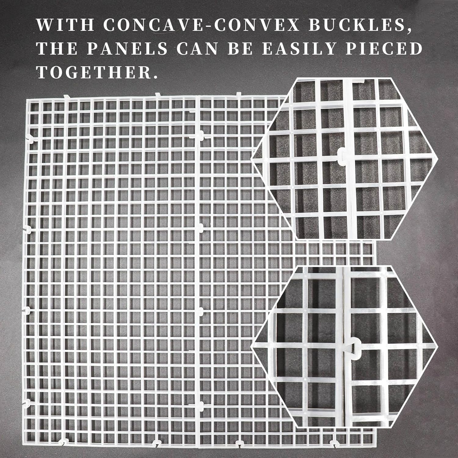 【Grid Panel Tank Lid】 The innovative grid panel design ensures proper ventilation while keeping your aquarium safe and secure. Perfect for maintaining a stable environment for your aquatic pets. 【8 Pack Set】 This value pack includes 8 acrylic tank lids, providing plenty of coverage for multiple tanks or larger setups. Ideal for hobbyists and professionals alike. 【Easy to Use】 Equipped with secure clips for hassle-free installation, these lids fit snugly on your tank and can be easily removed for cleaning or feeding. 【Durable and Safe】 Made from high-quality, transparent acrylic, these lids are sturdy, long-lasting, and safe for aquatic environments. They maintain their clarity while protecting your fish and plants. 【Customizable DIY Design】 With concave-convex buckles, the panels can be easily pieced together or trimmed with scissors to create a perfect fit for your tank’s unique dimensions and shape. › See more product details